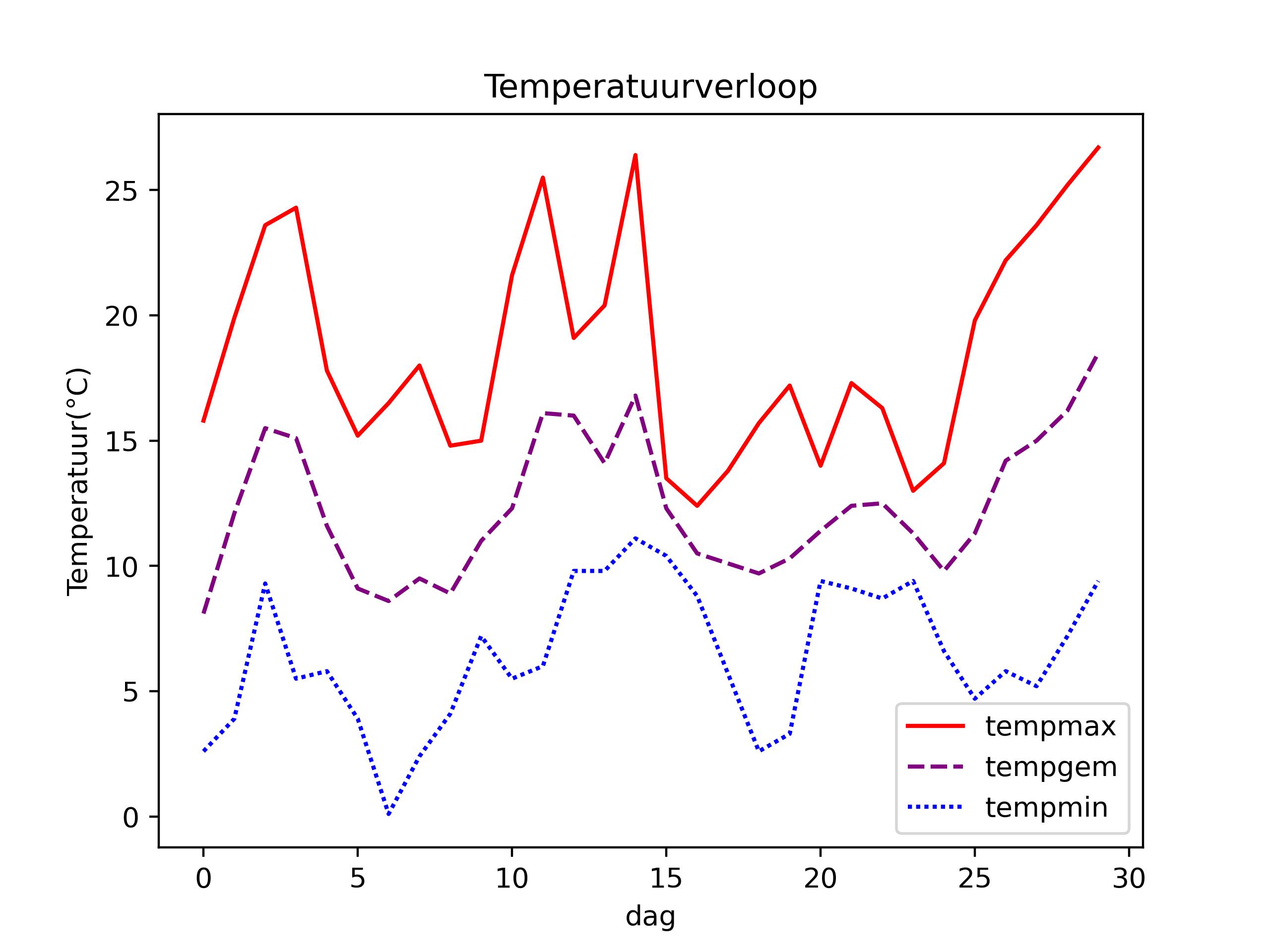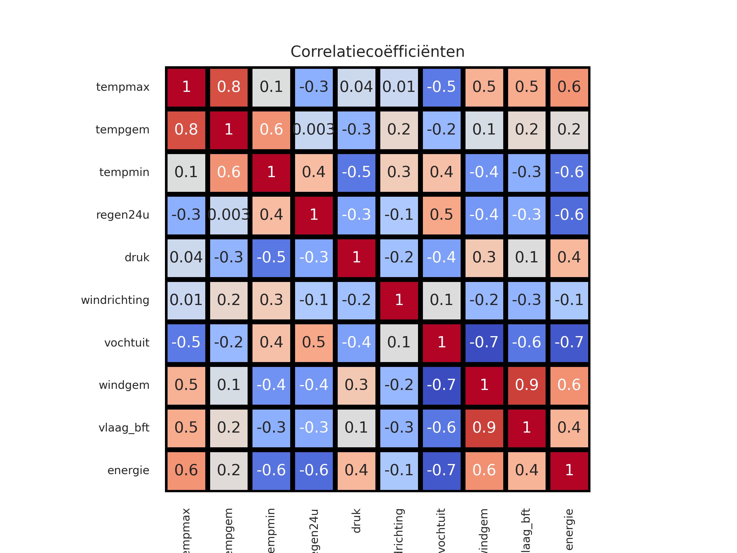 | dag | tempmax | tempgem | tempmin | regen24u | druk | windrichting | vochtuit | windgem | vlaag_bft | energie |
