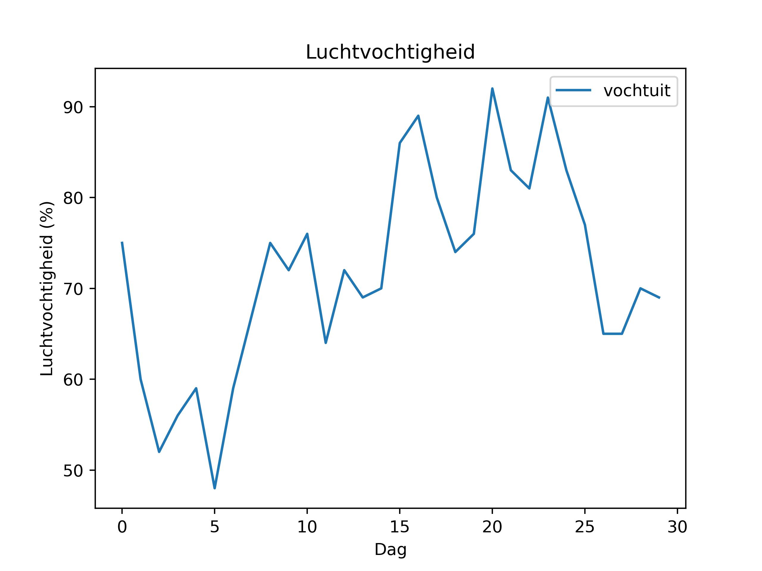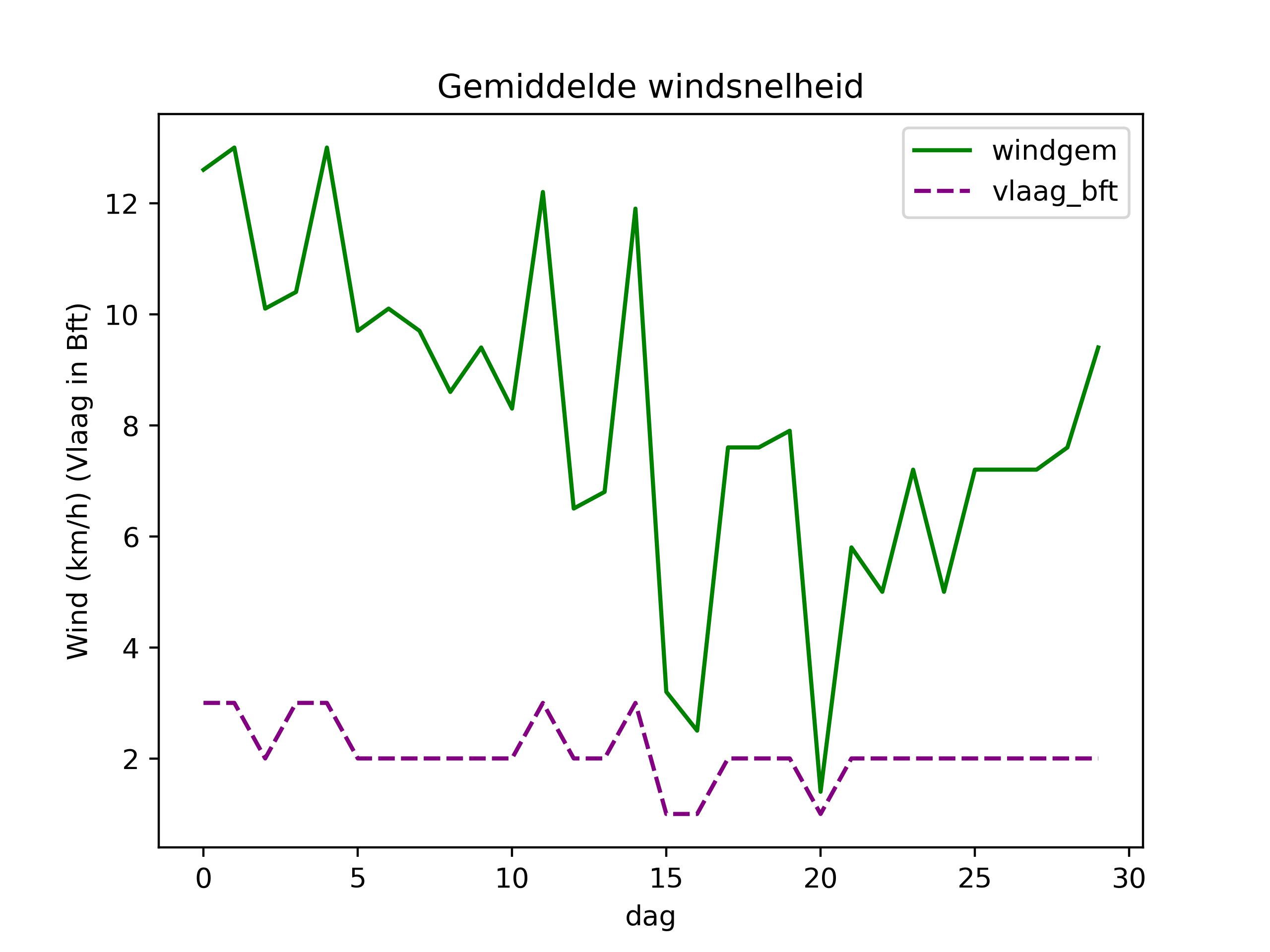 (temperatuur in °C, wind in km/u, windvlaag in Bft, regen in mm, luchtdruk in hPa, zonne-energie in kWh)