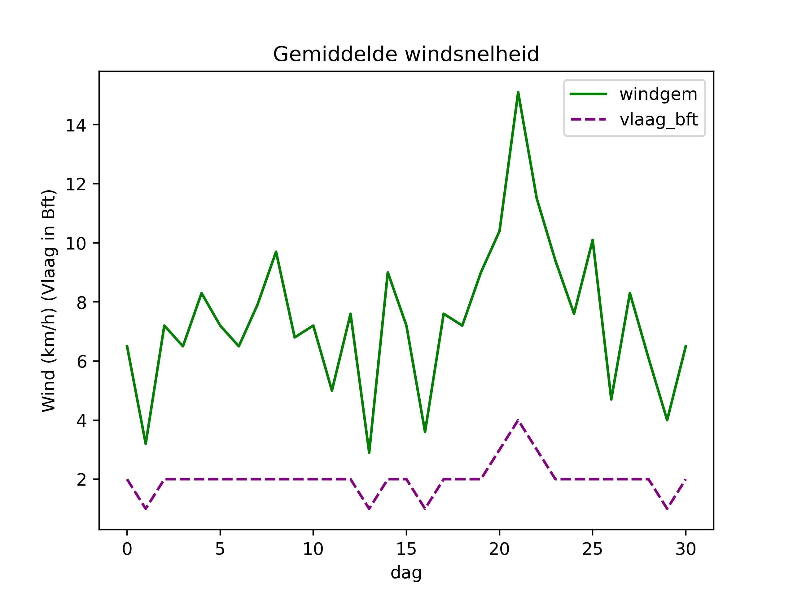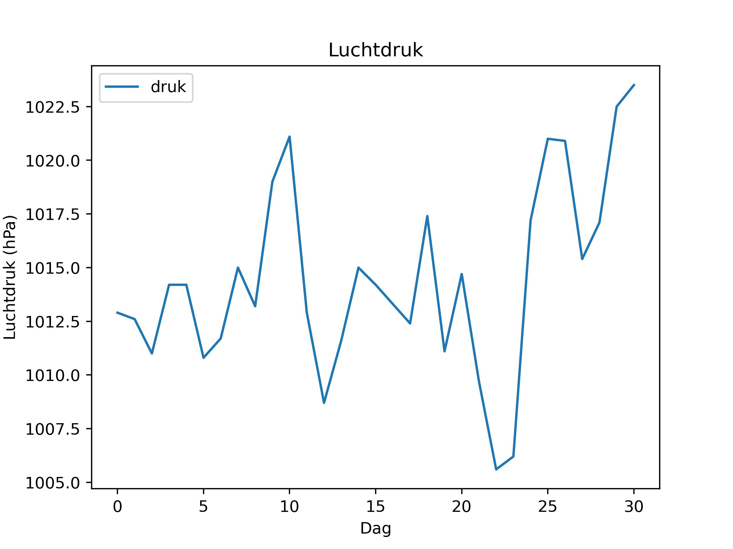 (temperatuur in °C, wind in km/u, windvlaag in Bft, regen in mm, luchtdruk in hPa, zonne-energie in kWh)