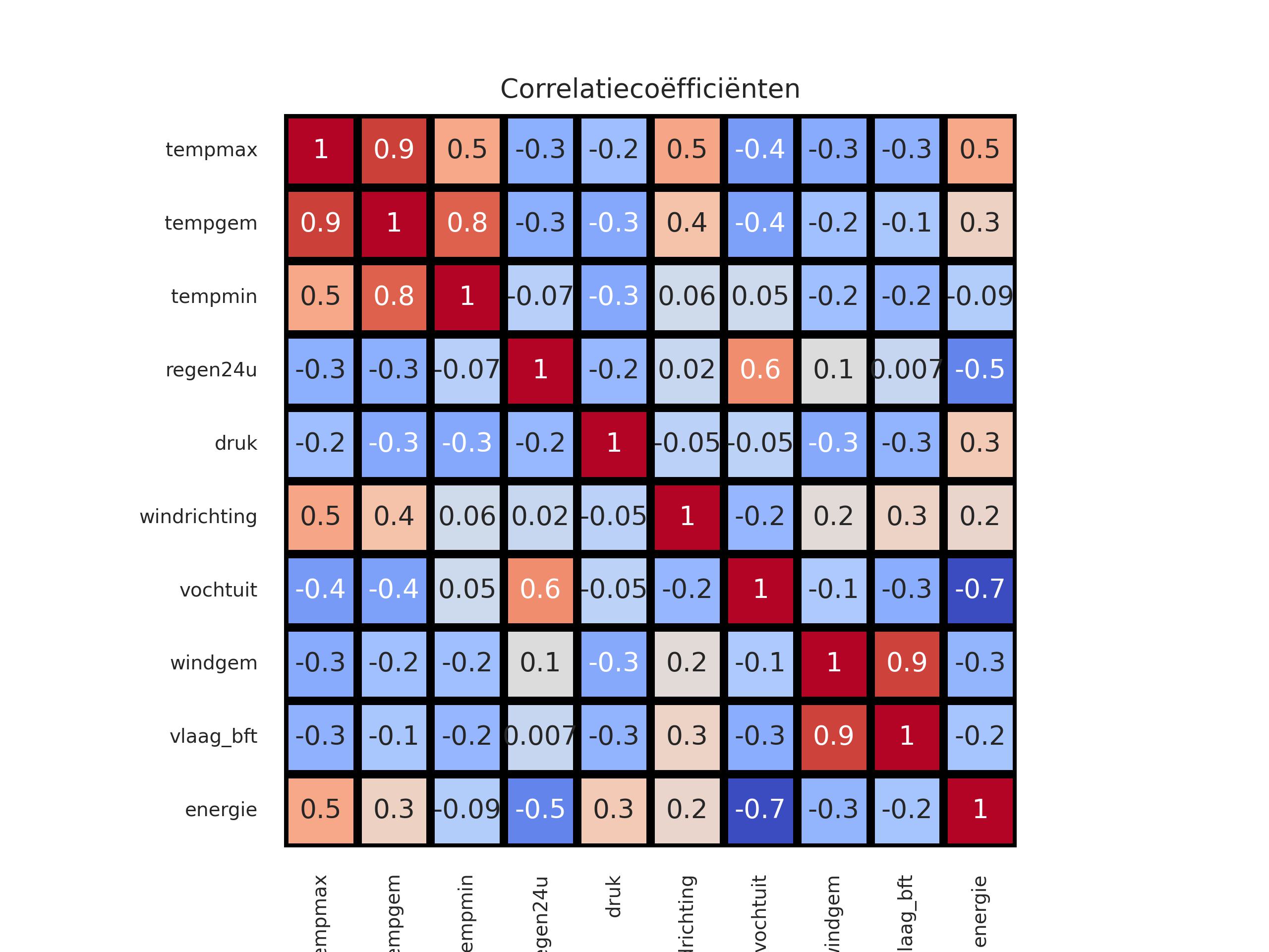 | dag | tempmax | tempgem | tempmin | regen24u | druk | windrichting | vochtuit | windgem | vlaag_bft | energie |