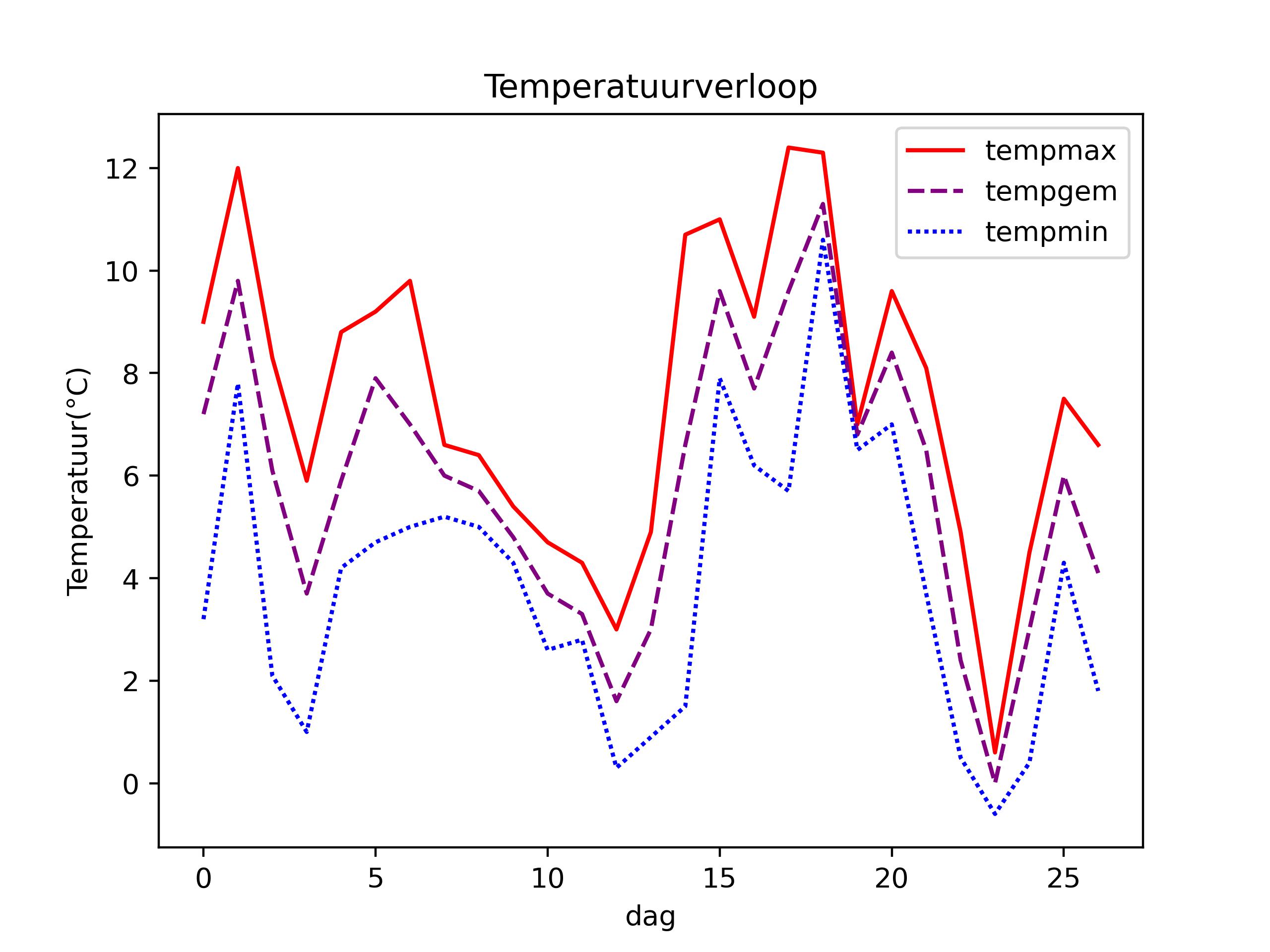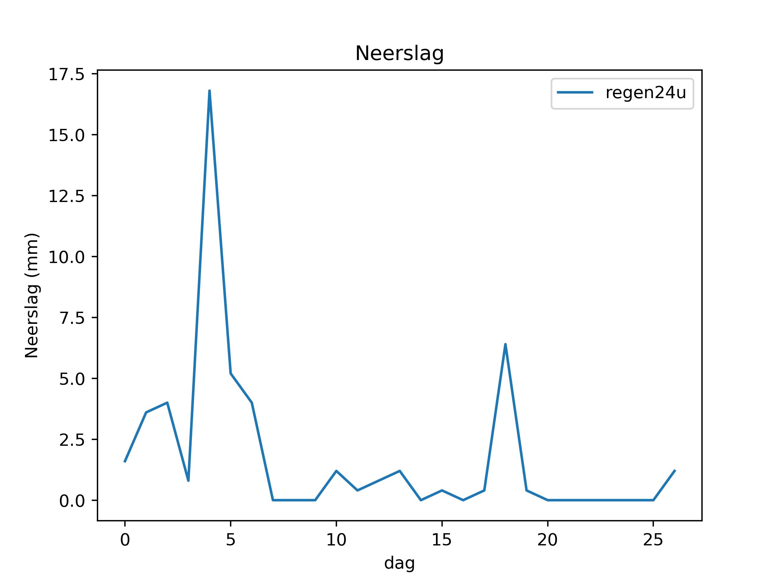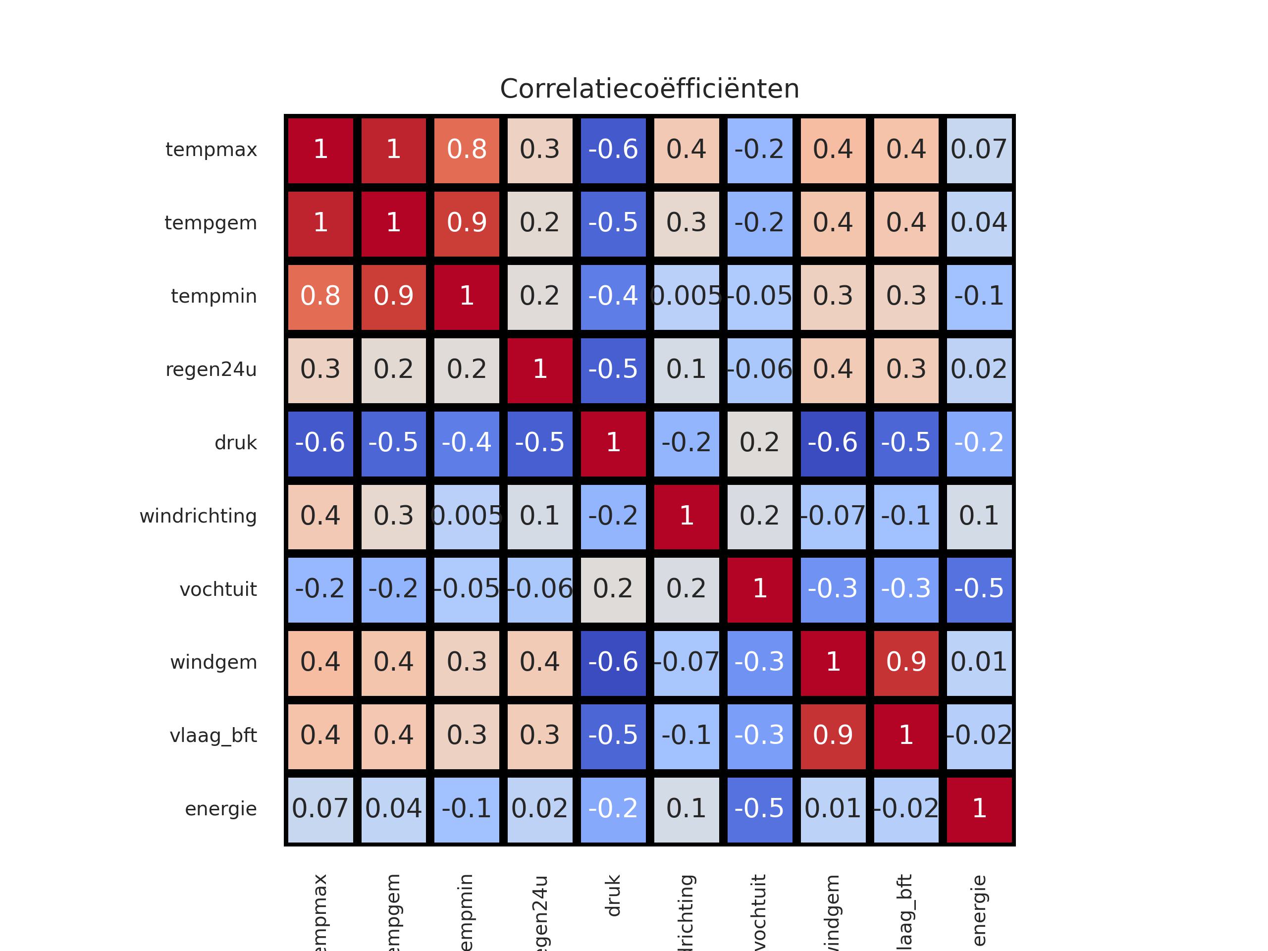 | dag | tempmax | tempgem | tempmin | regen24u | druk | windrichting | vochtuit | windgem | vlaag_bft | energie |