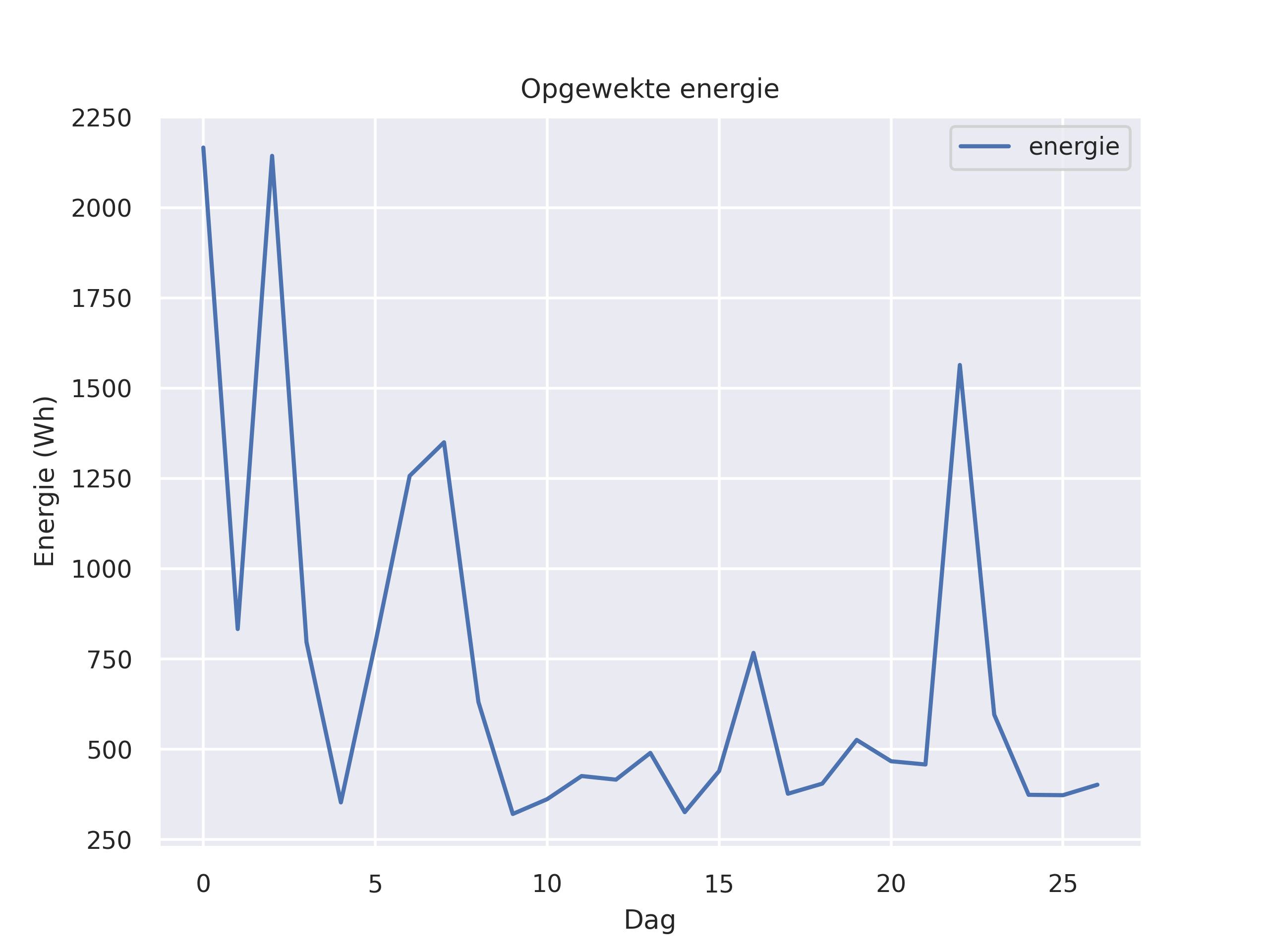 Er is 24 kWh aan zonnestroom opgewekt. Eén zonnepaneel werkt nog niet naar behoren. Die storing heeft te maken met een niet functionerende micro-omvormer. Deze wordt in januari vervangen.