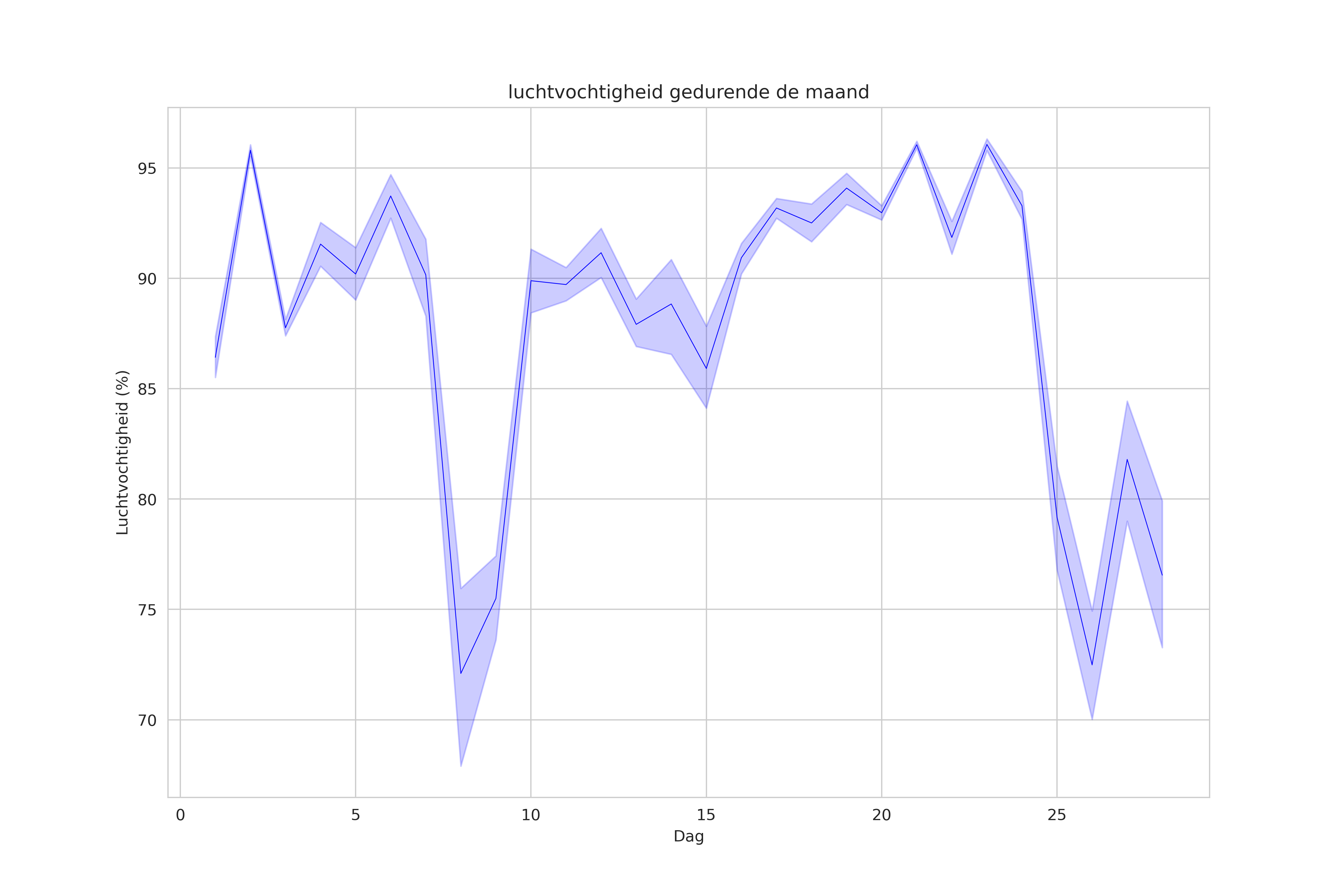 De laagste minimumtemperatuur werd bereikt tegen het einde van de maand toen een noordoostenwind helder en koud(er) weer bracht.