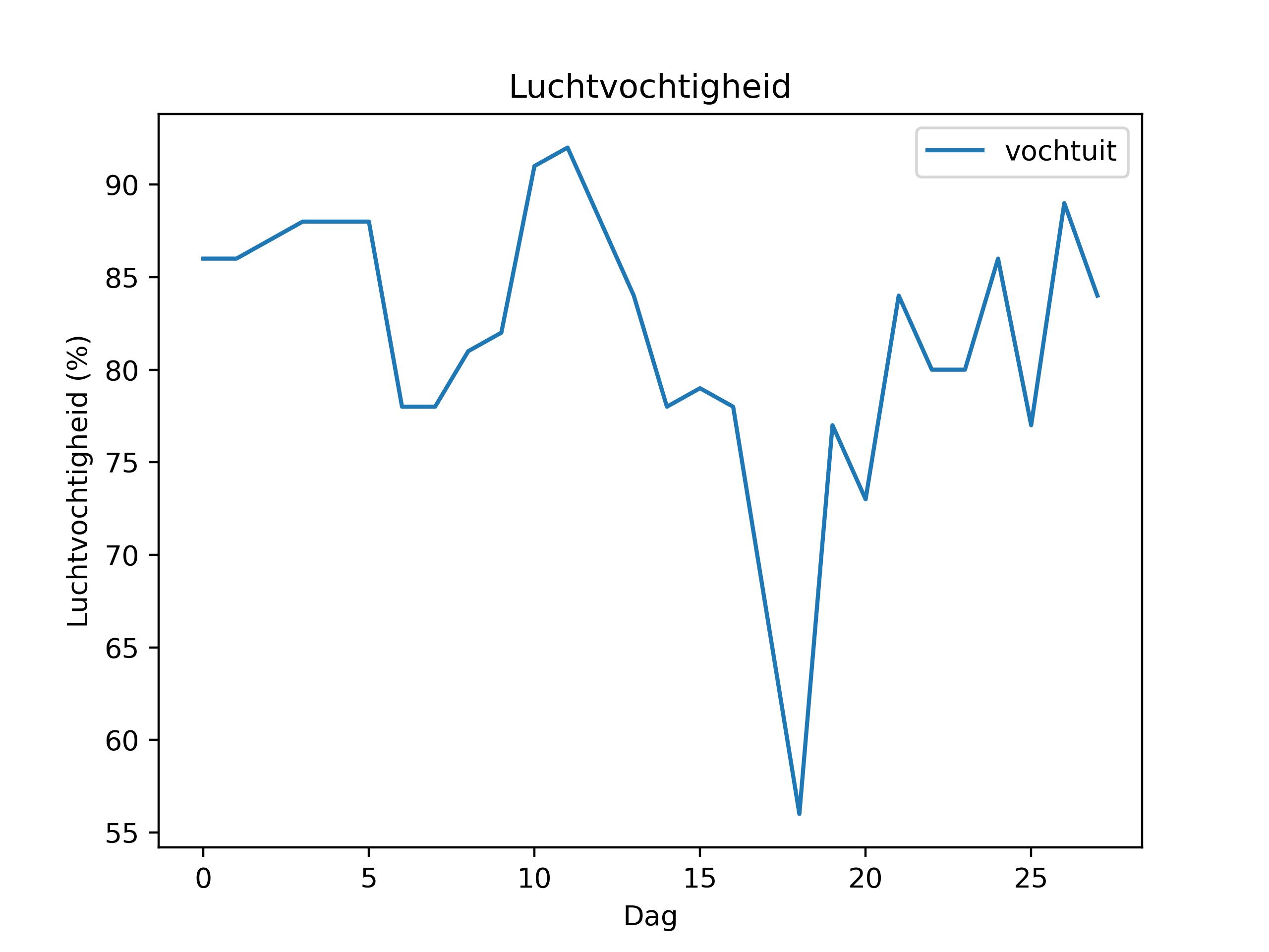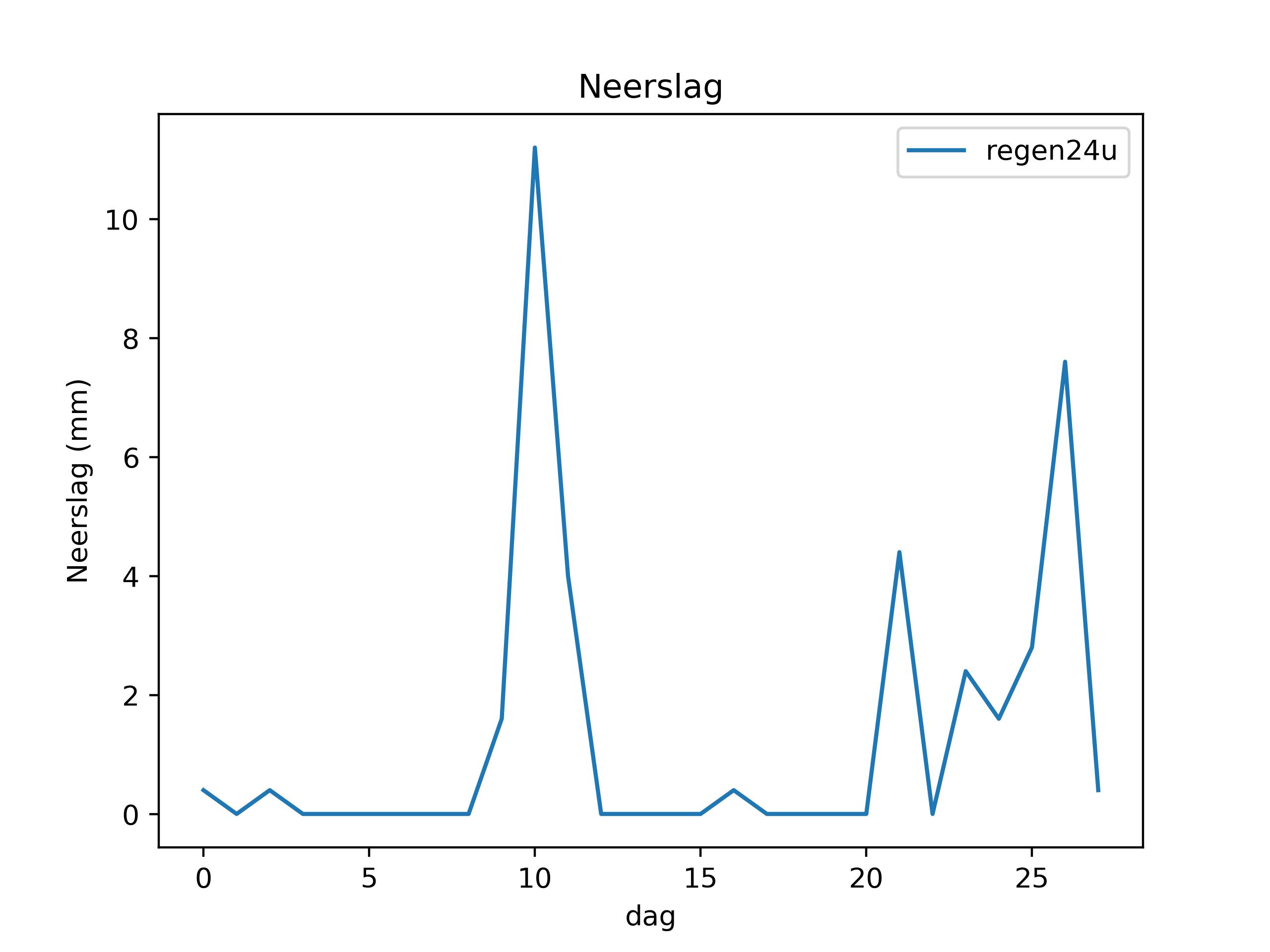 (temperatuur in °C, wind in km/u, windvlaag in Bft, regen in mm, luchtdruk in hPa, zonne-energie in kWh)