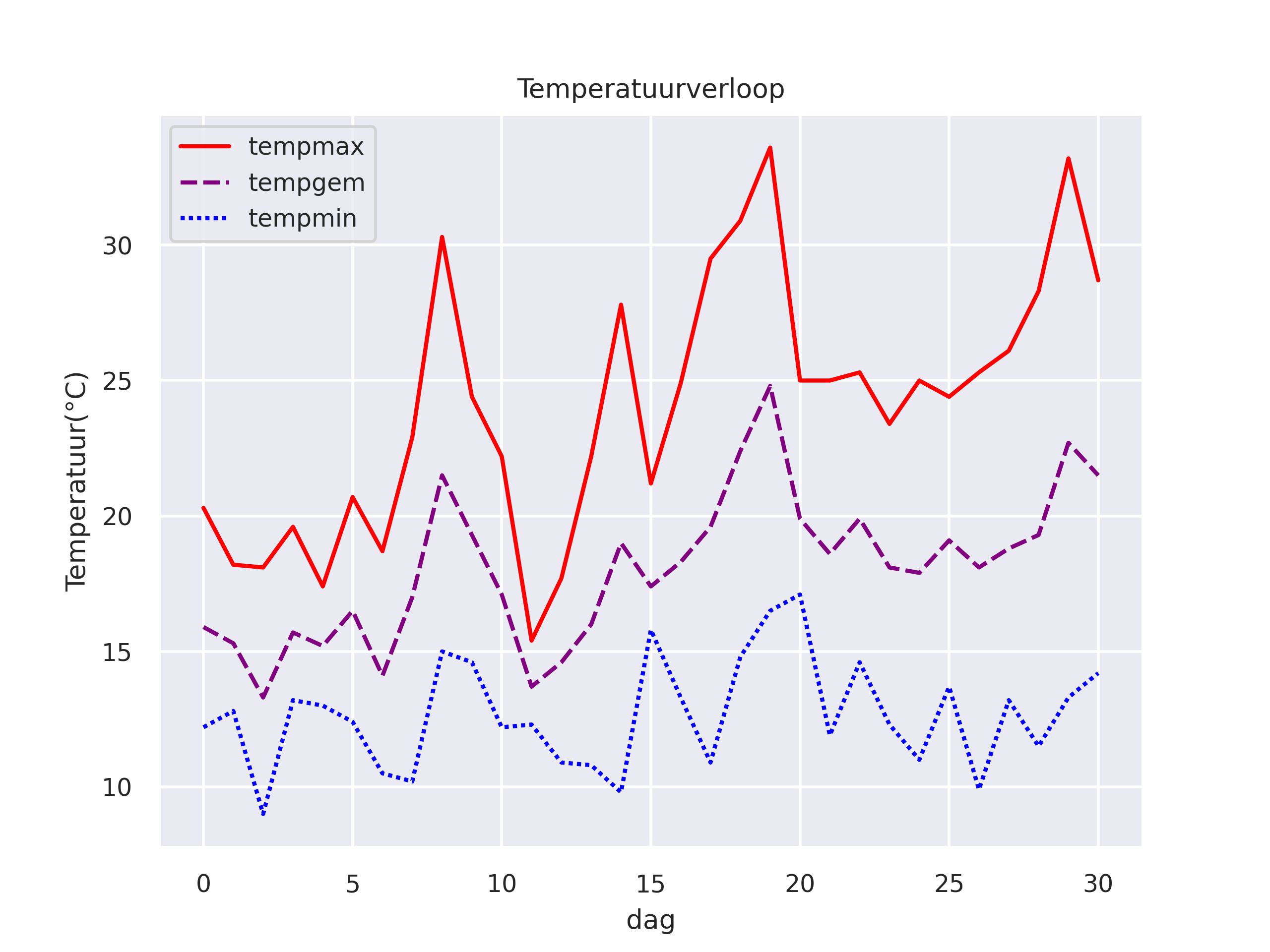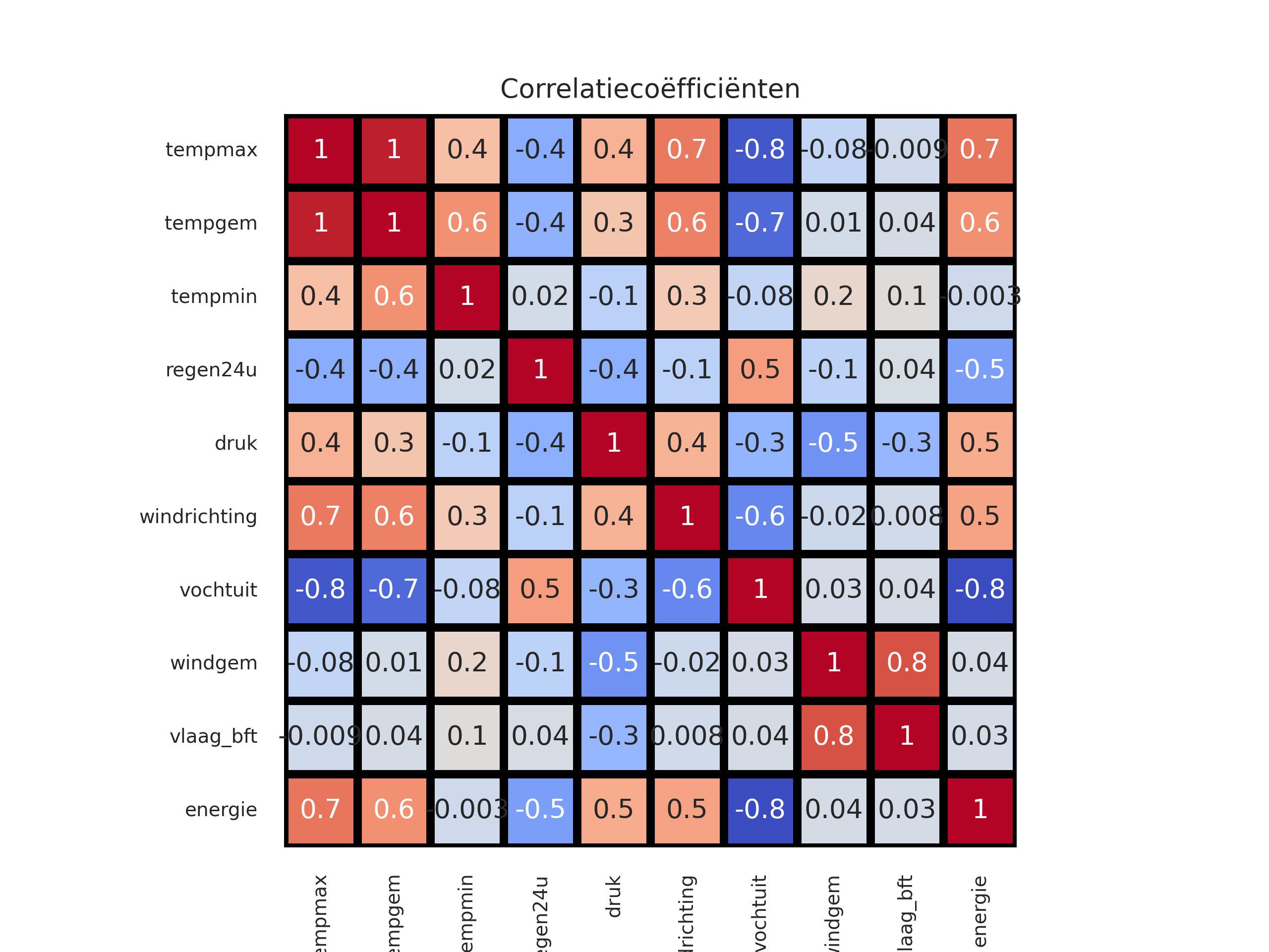 | dag | tempmax | tempgem | tempmin | regen24u | druk | windrichting | vochtuit | windgem | vlaag_bft | energie |