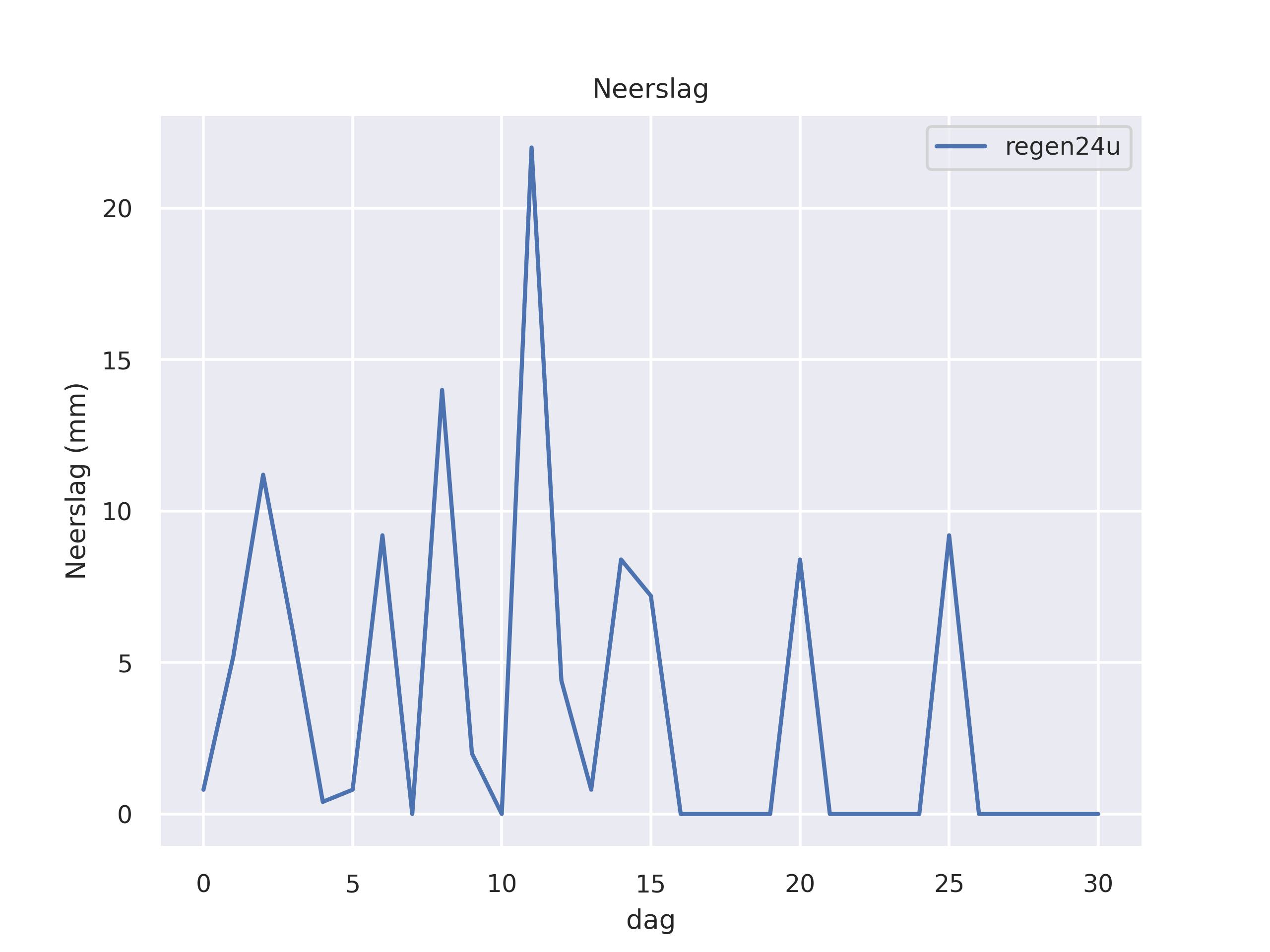 In de eerste helft van de maand viel 85 mm van de 110 mm neerslag. Het einde van de maand was zomers en droog.