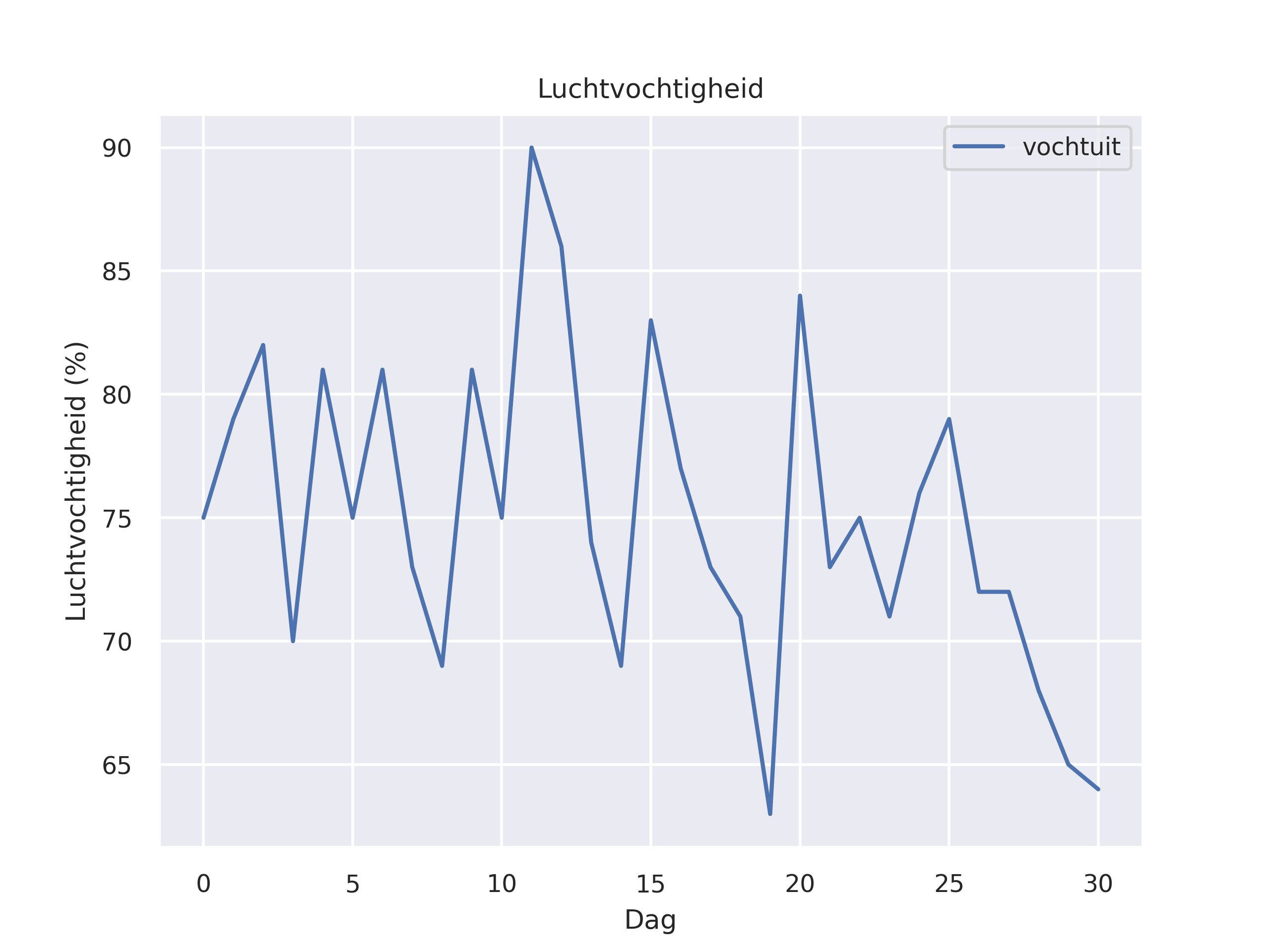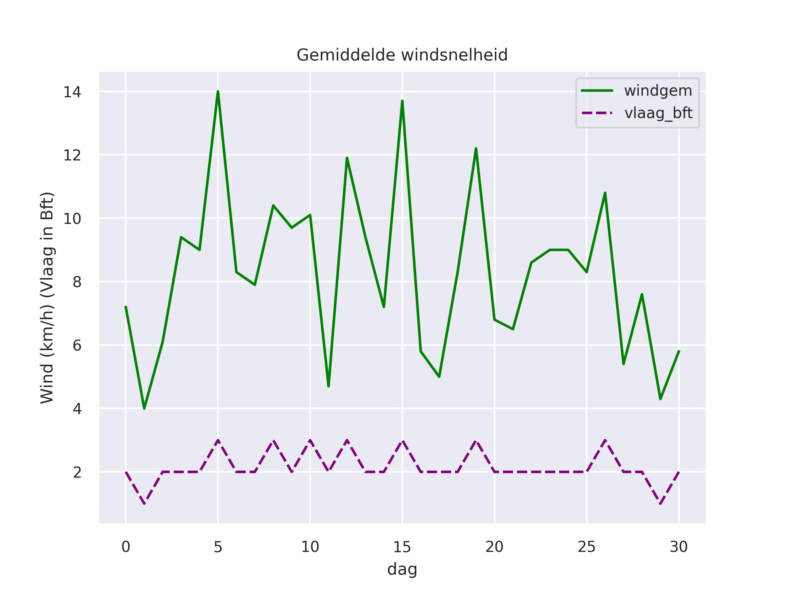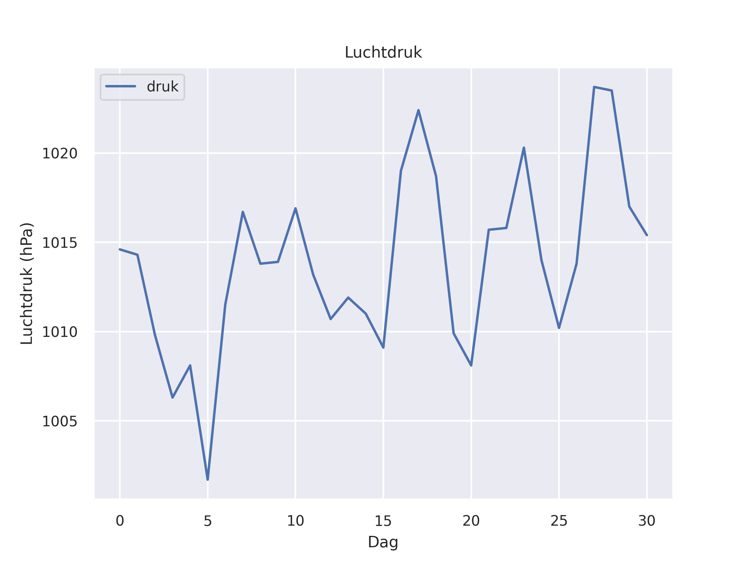 (temperatuur in °C, wind in km/u, windvlaag in Bft, regen in mm, luchtdruk in hPa, zonne-energie in kWh)