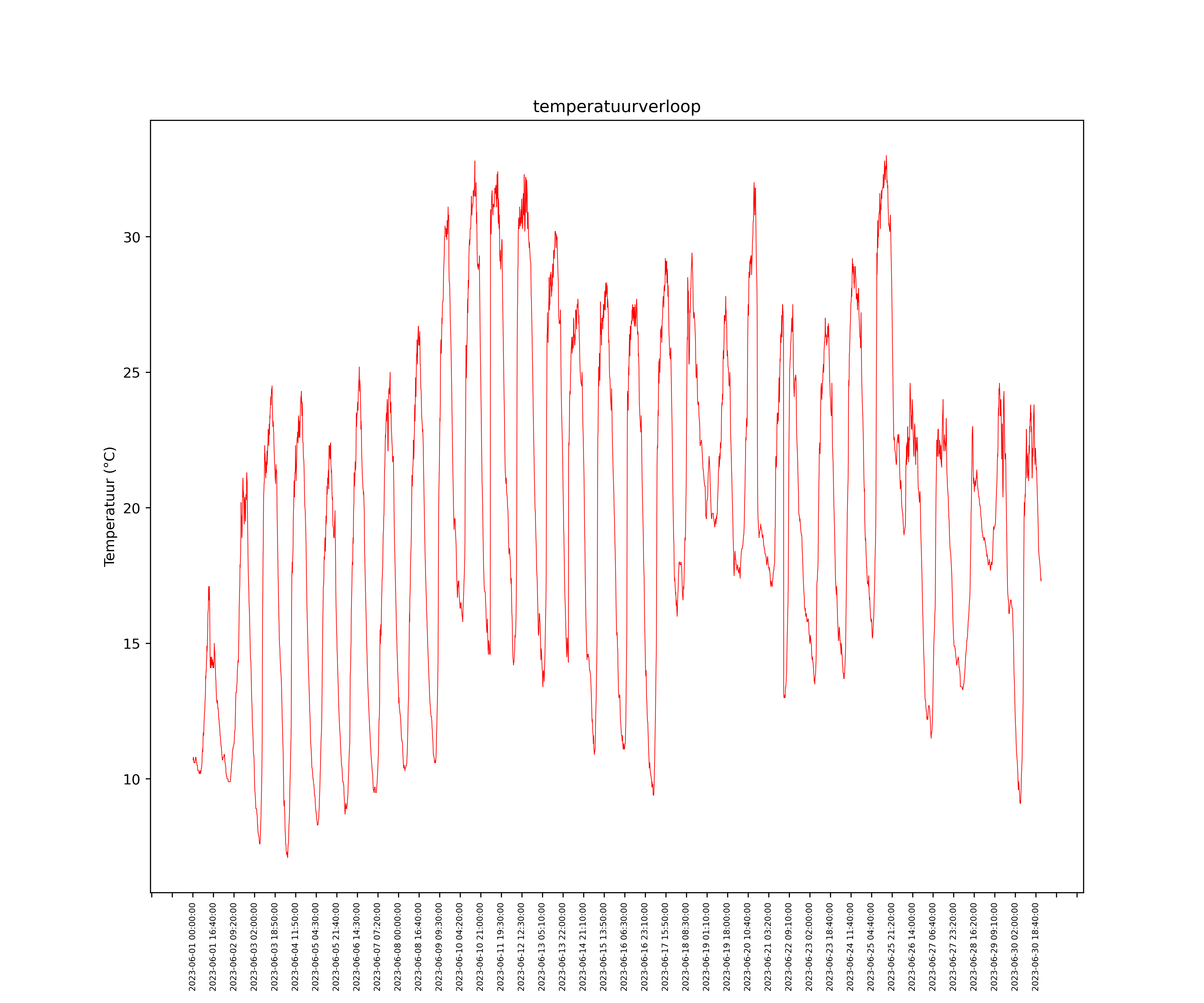 Met een gemiddelde temperatuur van 19,7 °C tegen normaal 16,2 °C was het de warmste junimaand sinds 1901 (volgens het KNMI). De hoogste maximumtemperatuur werd gemeten op 25 juni. Er waren meerdere tropische dagen, zeven in totaal. Het aantal zomerse dagen was 20; dat zijn er vier meer dan het KNMI telde over de maand juni, en maar liefst 15 meer dan normaal. Ondanks de correctie voor de plaatsing van het weerstation (zie dit bericht over de kalibratie) lijkt de plaatsing van het weerstation op het dak de temperatuurmetingen positief te beïnvloeden. Eind van het jaar zal ik een nieuwe kalibratie uitvoeren waarin ik de data van afgelopen jaar toevoeg aan de kalibratieset.