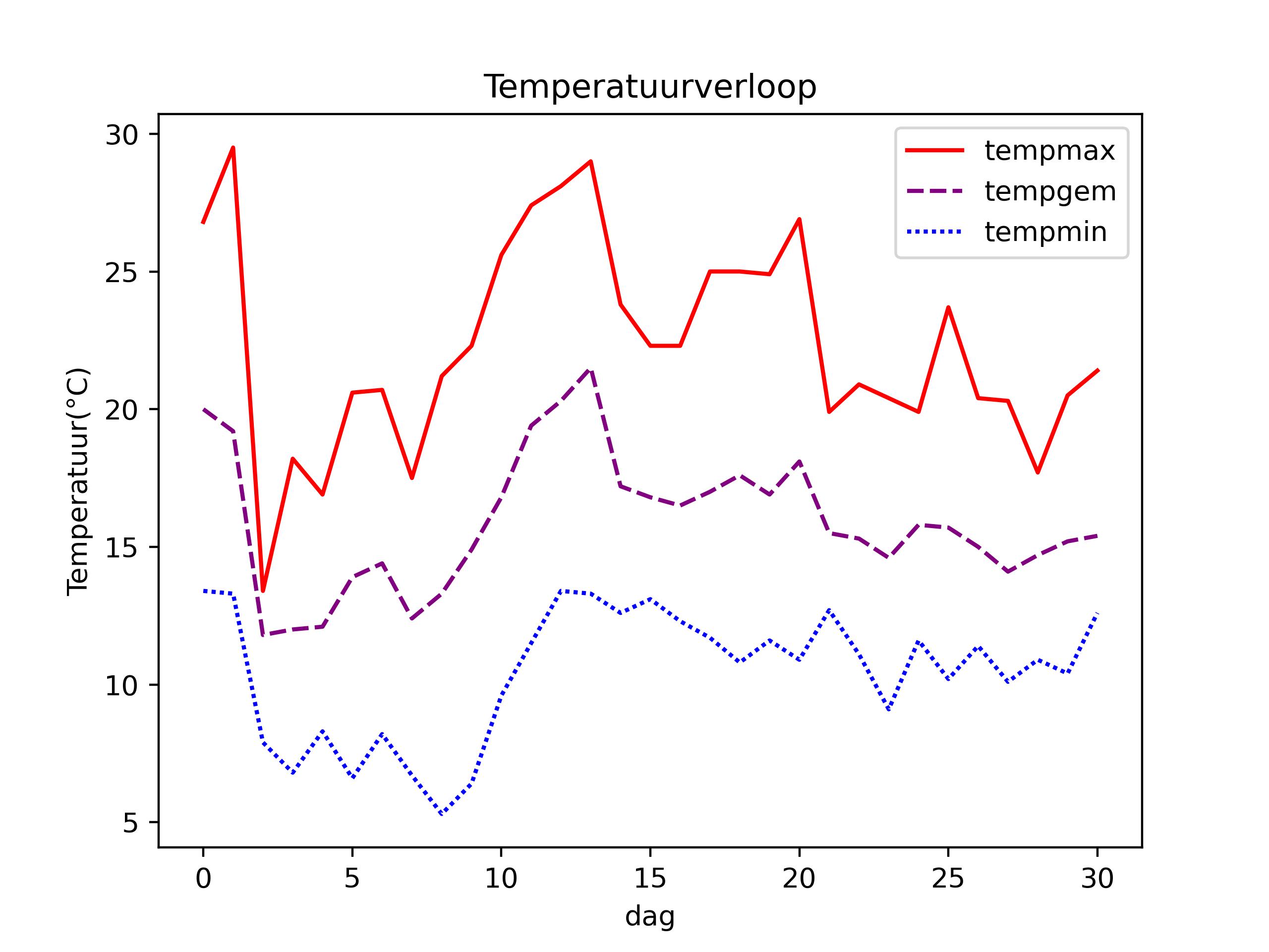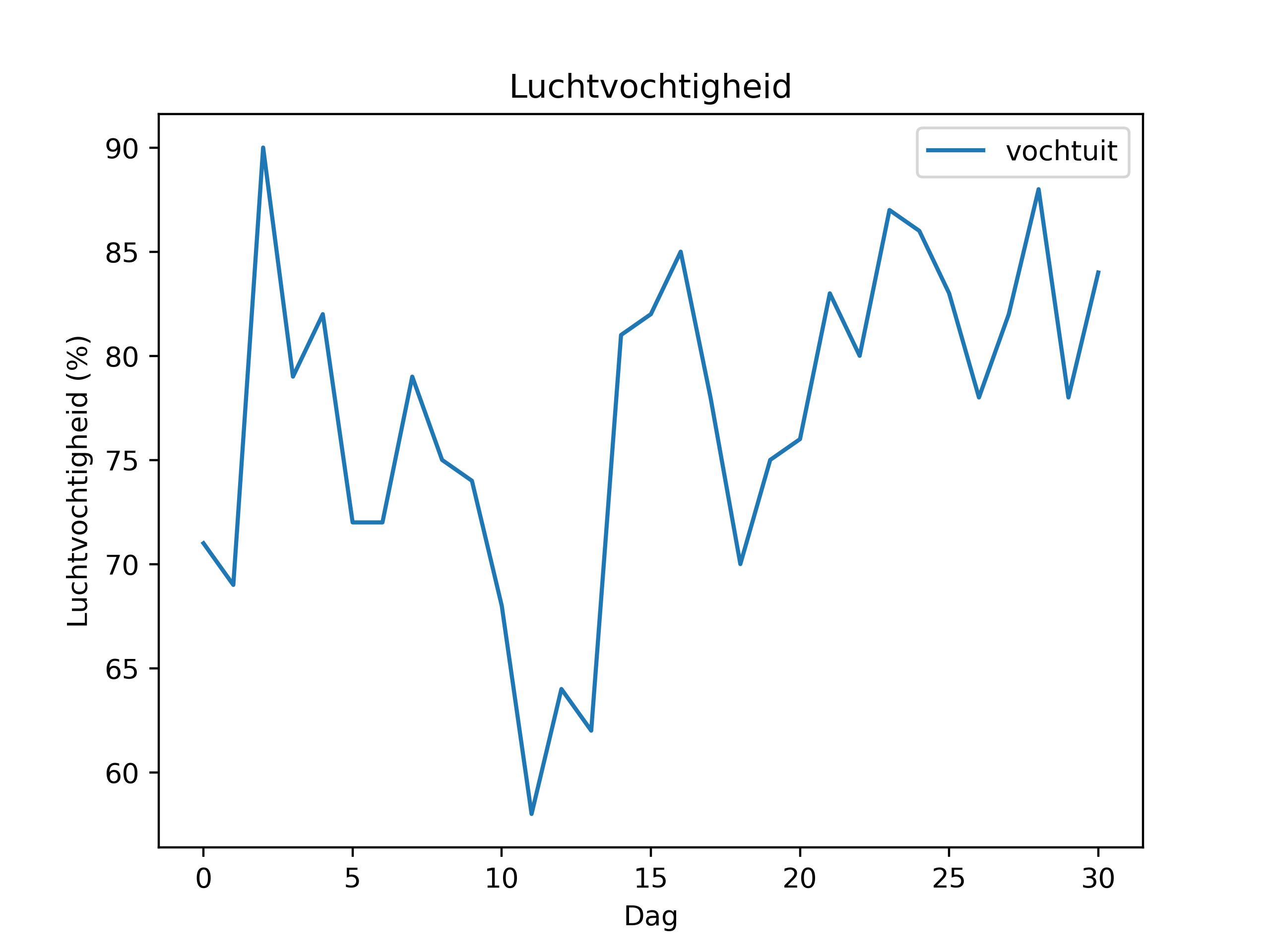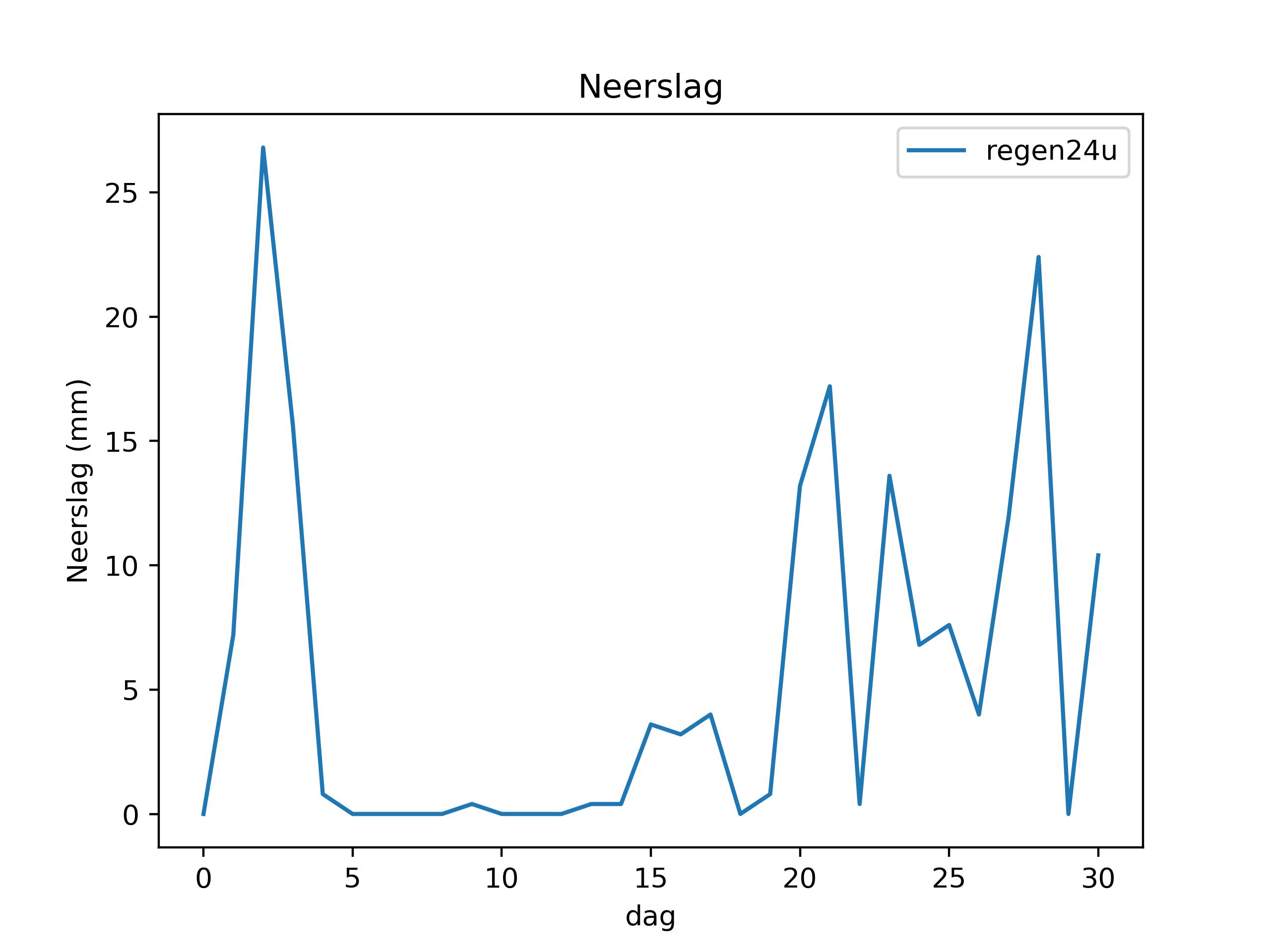 | dag | Tmax | Tgem | Tmin | regen | druk | richting | vocht | snelheid | vlaag | zon |