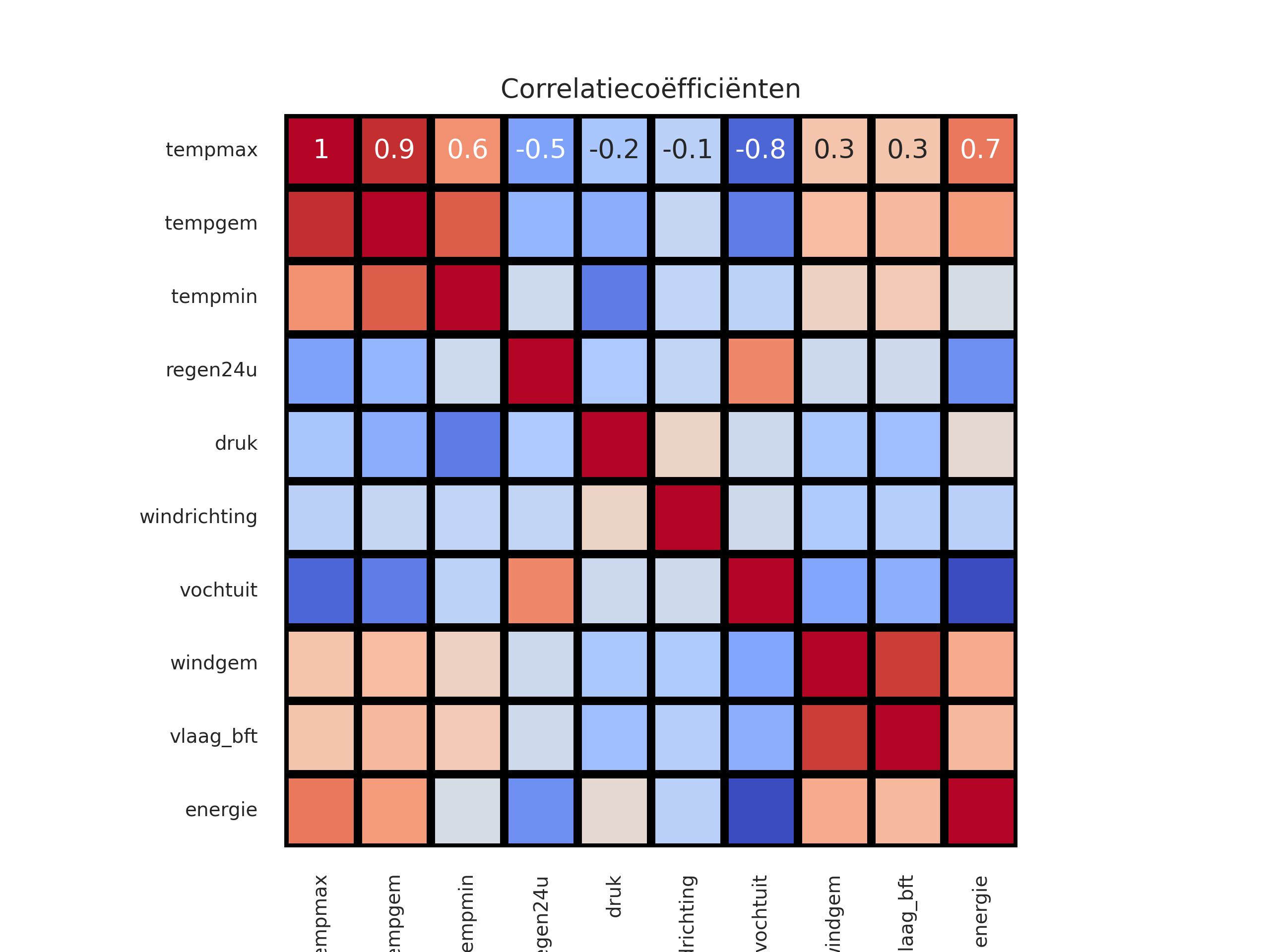 (temperatuur in °C, wind in km/u, windvlaag in Bft, regen in mm, luchtdruk in hPa, zonne-energie in kWh)