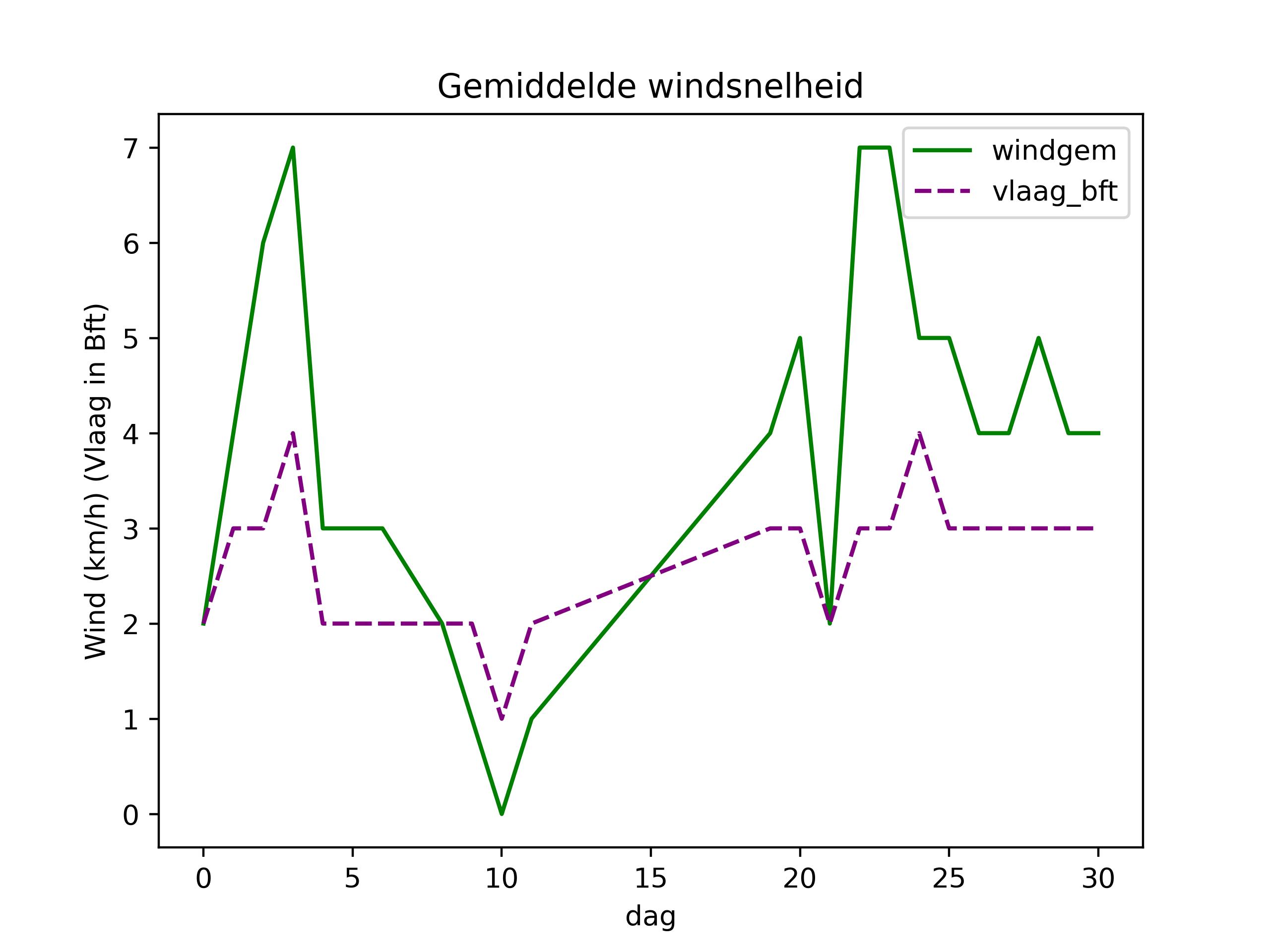 De gemiddelde windsnelheid was 3,8 m/s en de maximale windvlaag was 4 Bft. De windkwantuur viel voornamelijk uit westwestnoordwester en noordenwind.