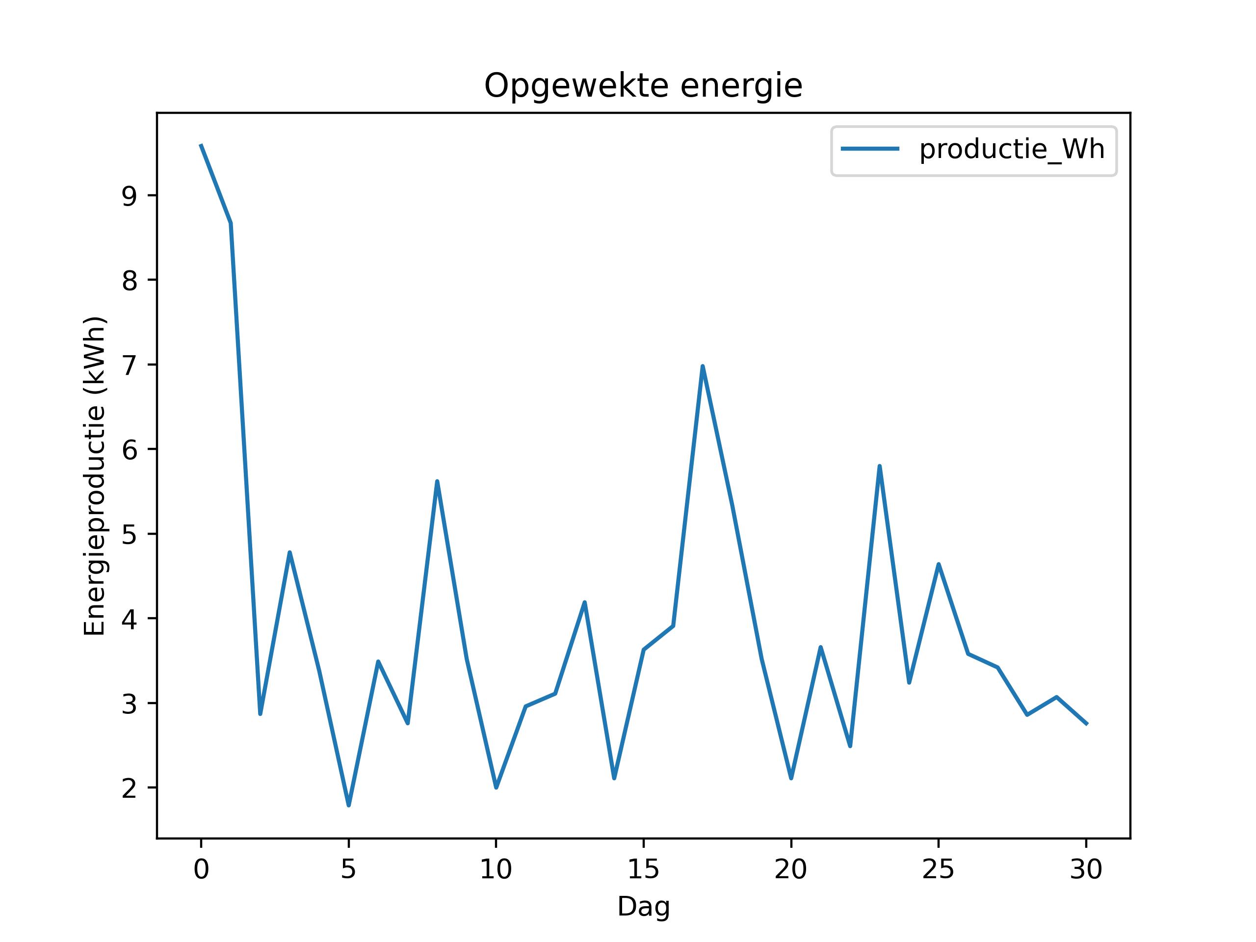 De hoogste zonnestroomproductie op een dag bedroeg 9,6 kWh. Dit was opgewekt in de tweede week van oktober.