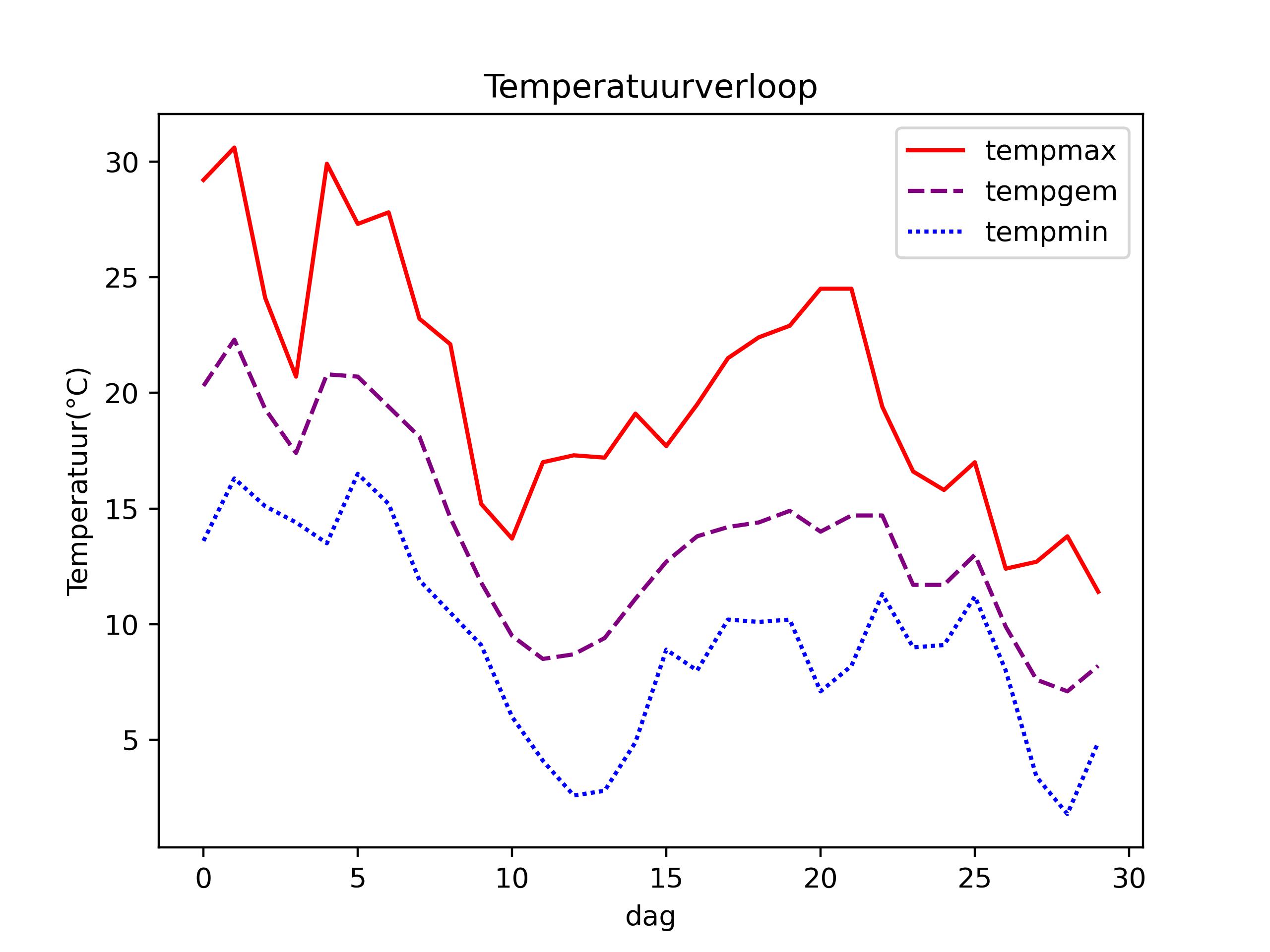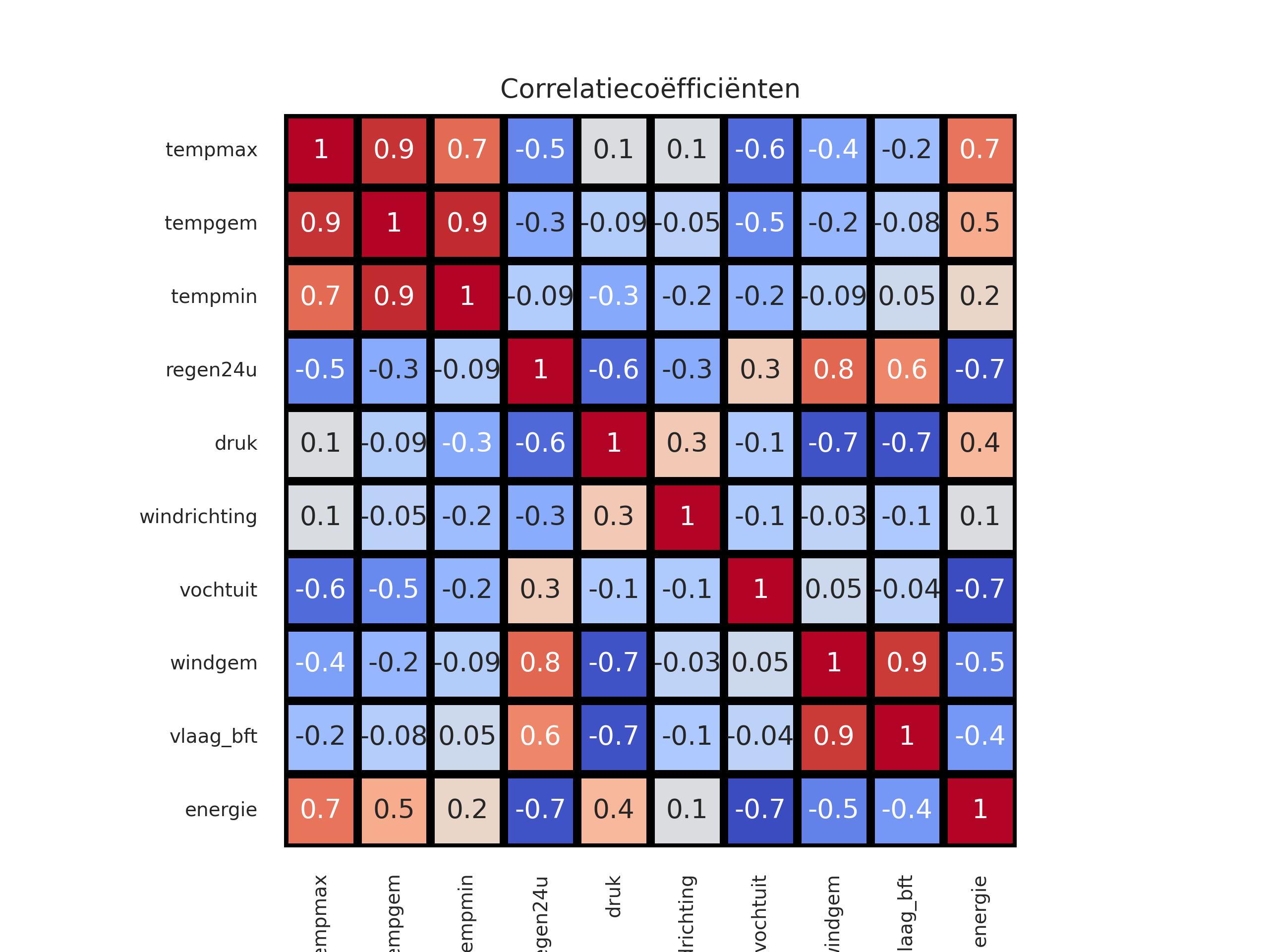 | dag | tempmax | tempgem | tempmin | regen24u | druk | windrichting | vochtuit | windgem | vlaag_bft | energie |