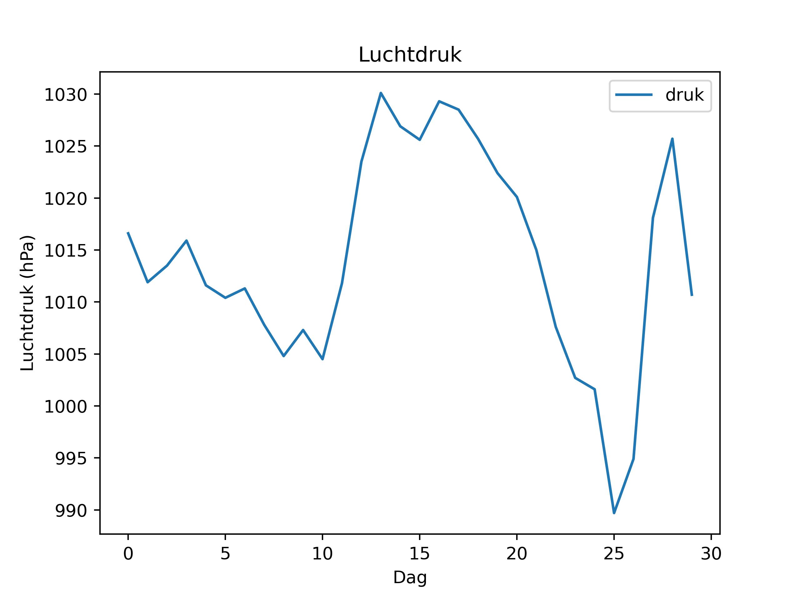 (temperatuur in °C, wind in km/u, windvlaag in Bft, regen in mm, luchtdruk in hPa, zonne-energie in kWh)