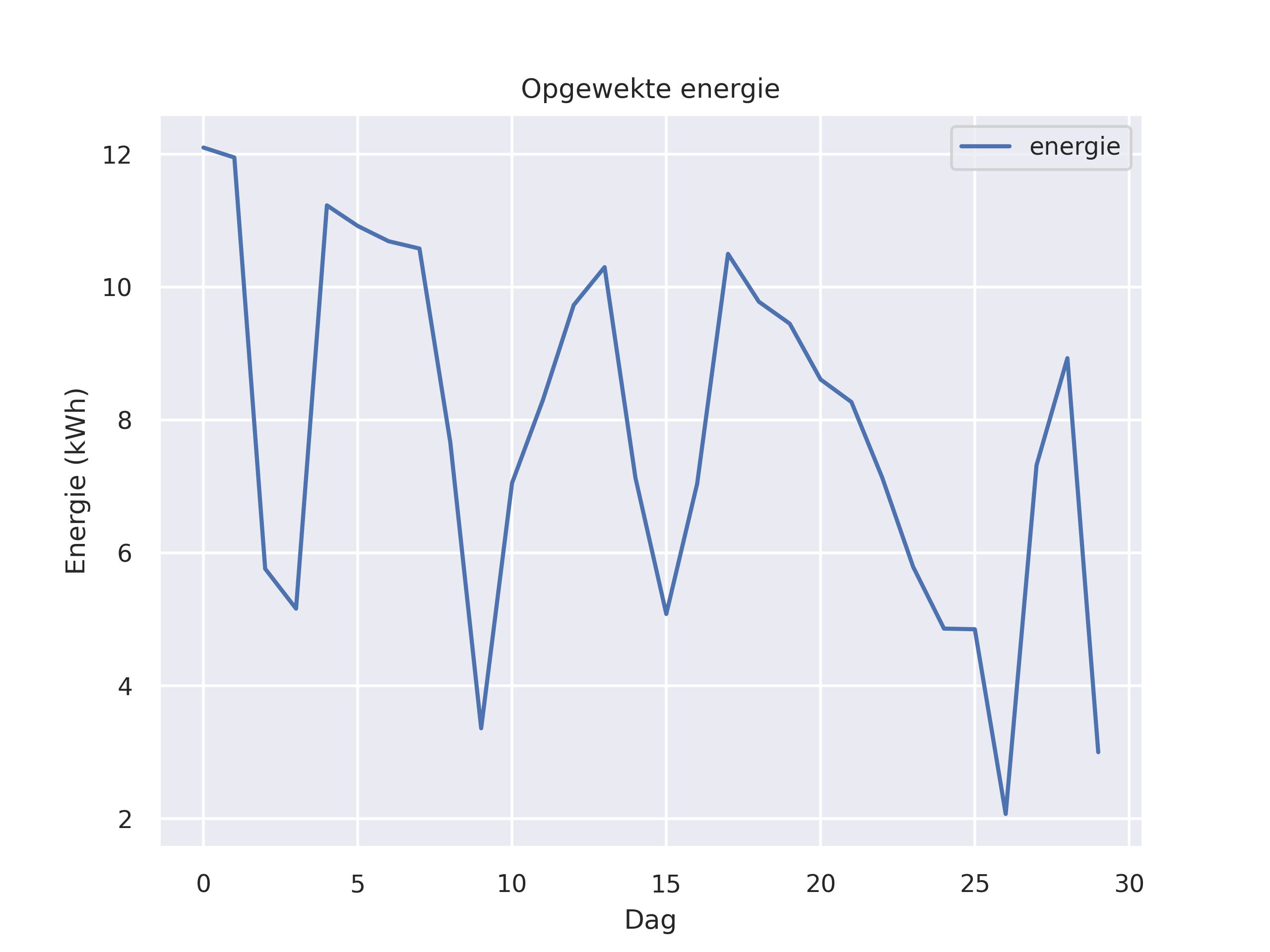 Er is 235 kWh aan zonnestroom opgewekt. Eén zonnepaneel werkt niet meer. Die storing is inmiddels onder handen bij de installateur van de zonnepanelen. Vermoedelijk werkt de micro-inverter van het betreffende paneel niet meer goed.