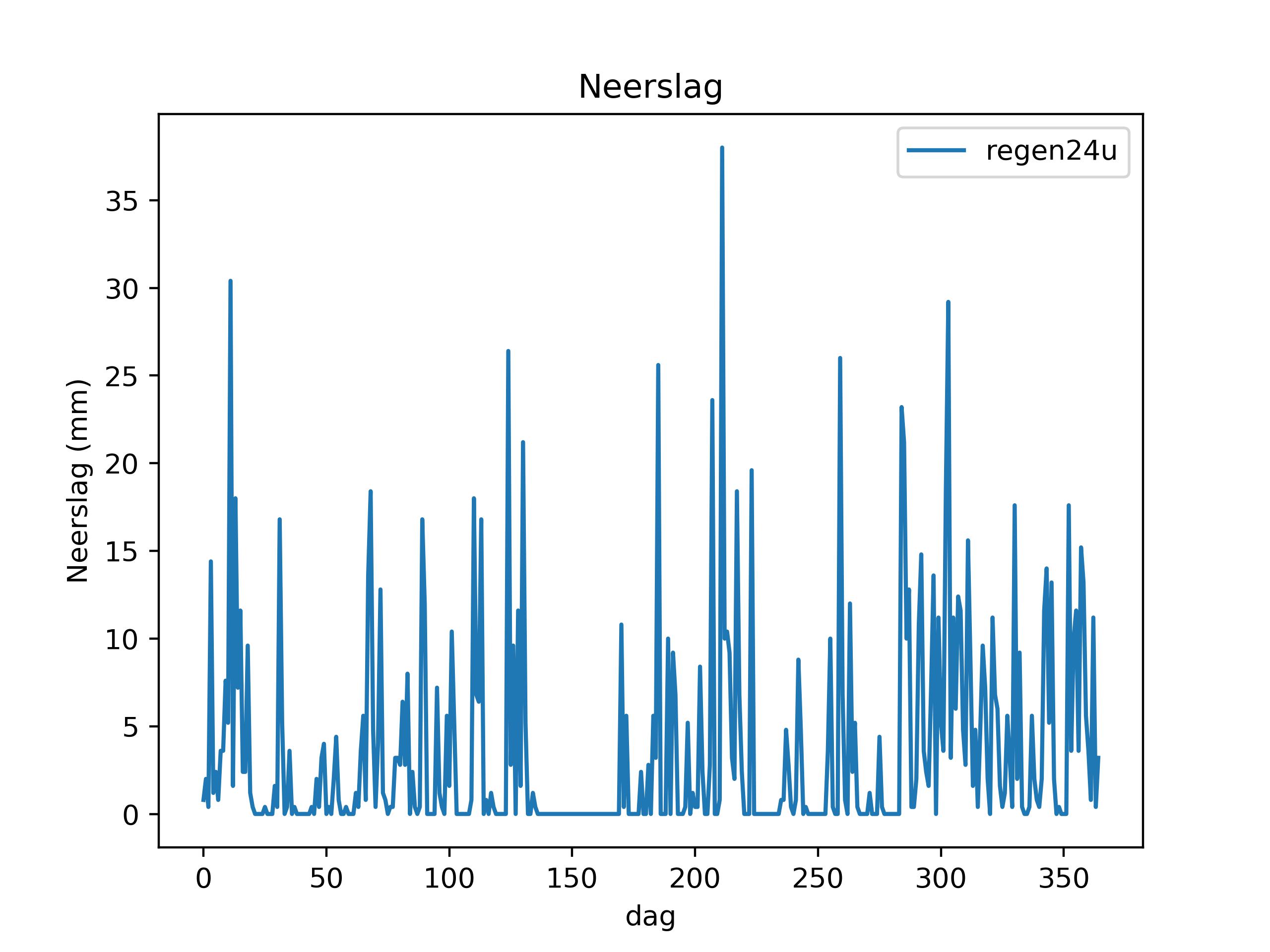 Landelijk gemiddeld viel op de KNMI-weerstations 1060 mm, normaal is dat 795 mm. Op een selectie van 13 (P13 genoemd) neerslagstations viel 1149 mm (bron: KNMI). Net zoals vorig jaar viel er meer neerslag op weerstation P41_Ermelo, maar liefst 1330 mm. Dat is 270 mm meer neerslag dan in De Bilt valt. Dat is opvallend omdat beide locaties op korte afstand van elkaar liggen (40 km hemelsbreed). De meeste neerslag viel in de maand oktober toen 196 mm regen werd geregistreerd.