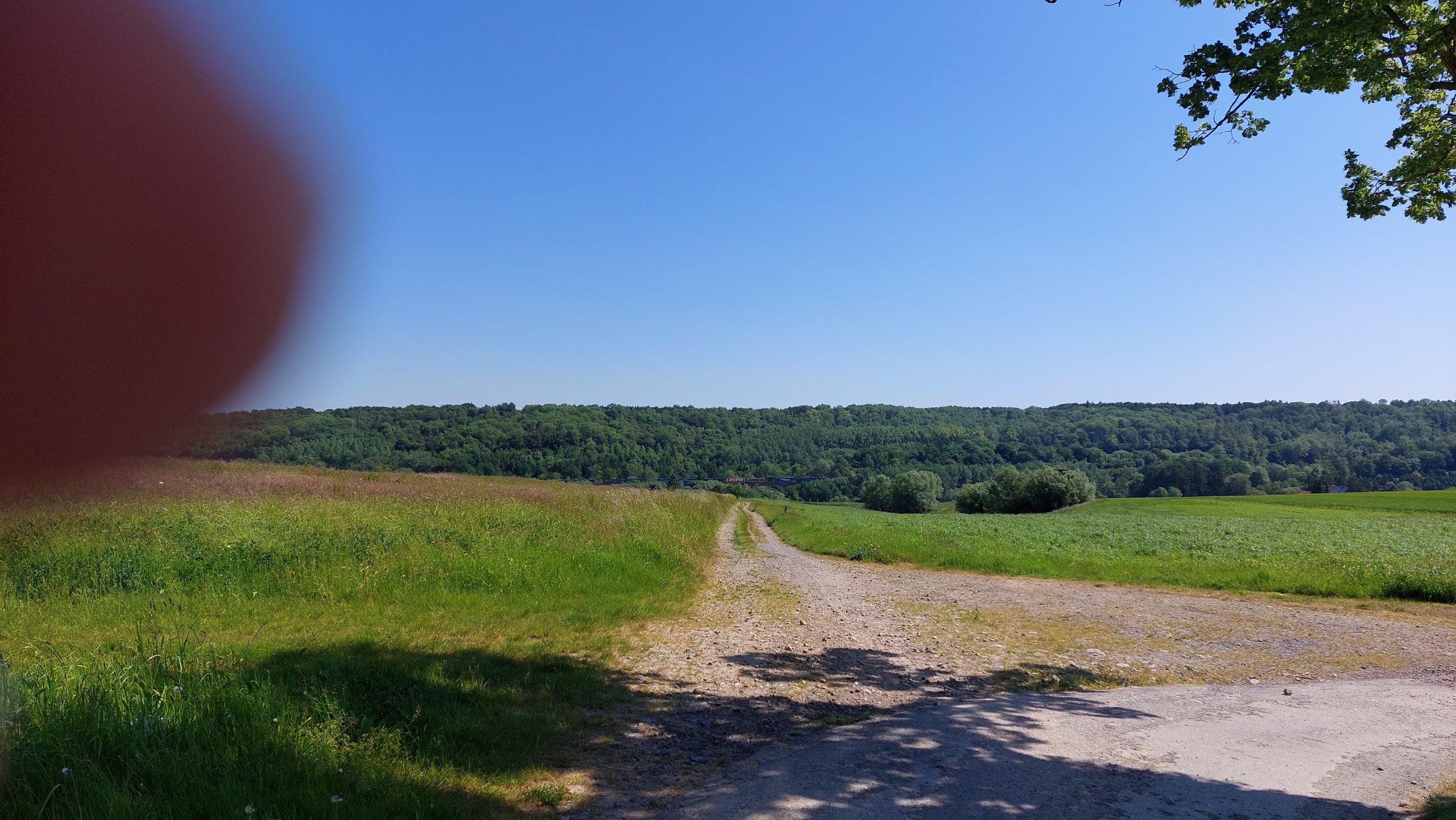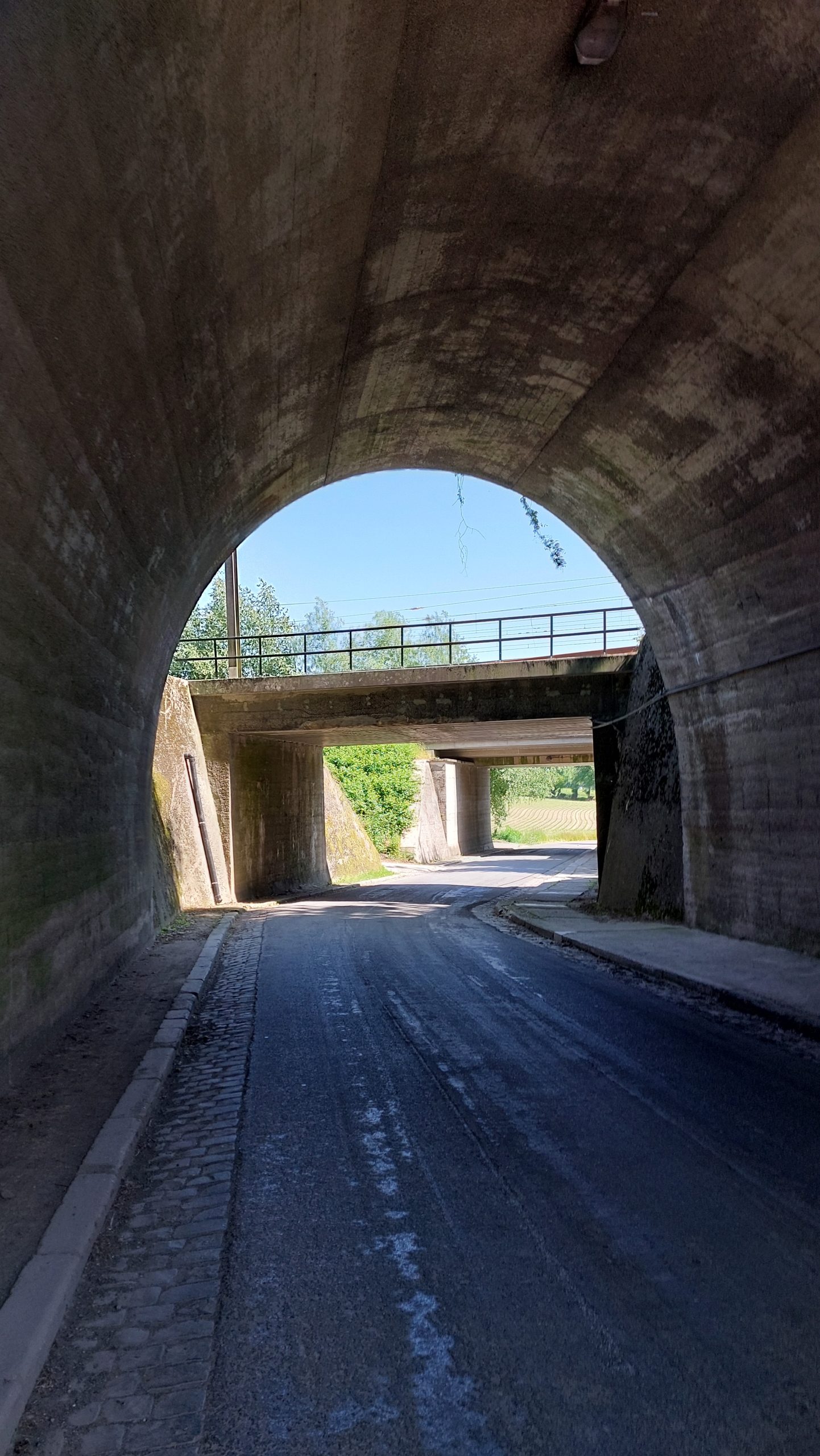 Dit bos is bekend terrein voor me, dus ik weet wat ik kan verwachten. Bij de ingang van de spoortunnel voert het pad steil omhoog. Ik neem mijn eerste energy-gel en drink wat water uit de waterzak. Deze klotst gelukkig niet omdat ik deze vacuüm gezogen heb. Niet zelf bedacht maar naar aanleiding van een goede tip van een collega renner bij een eerdere trail-run. Het klimmen gaat goed en de voormalige tunnel van Laschet komt in zicht (zie ook mijn eerdere beschrijving van de vele ‘kronkelende’ voormalige spoorlijnen in deze regio van België). De tweede ‘bestijging’ van het Beusdaler Bos is evenwel lastiger. Het gras staat tot aan mijn dijen hoog. Ik kan niet meer in tempo lopen en moet wandelen waarbij ik de benen hoog moet optrekken. Nadat ik weer op een normaal pad kom, inspecteer ik eerst de benen op de aanwezigheid van teken en vervolg dan de route.